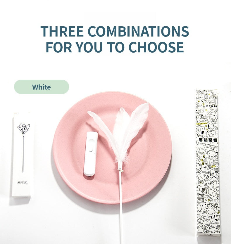 Cat Teaser Stick Laser Teaser Stick Feather Three In One USB Charging Multifunctional Pet Supplies Toy Teaser Stick Replacement Head