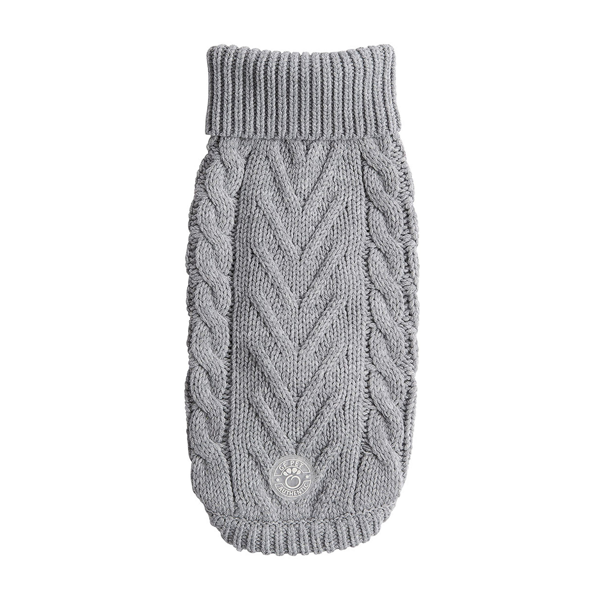 The GF PET Chalet Sweater is chunky and snuggly soft. The high turtleneck, ribbed arm holes and sculpted body shape make for a super comfy fit for both boy and girl doggies. A timeless and luxurious cable knit classic!