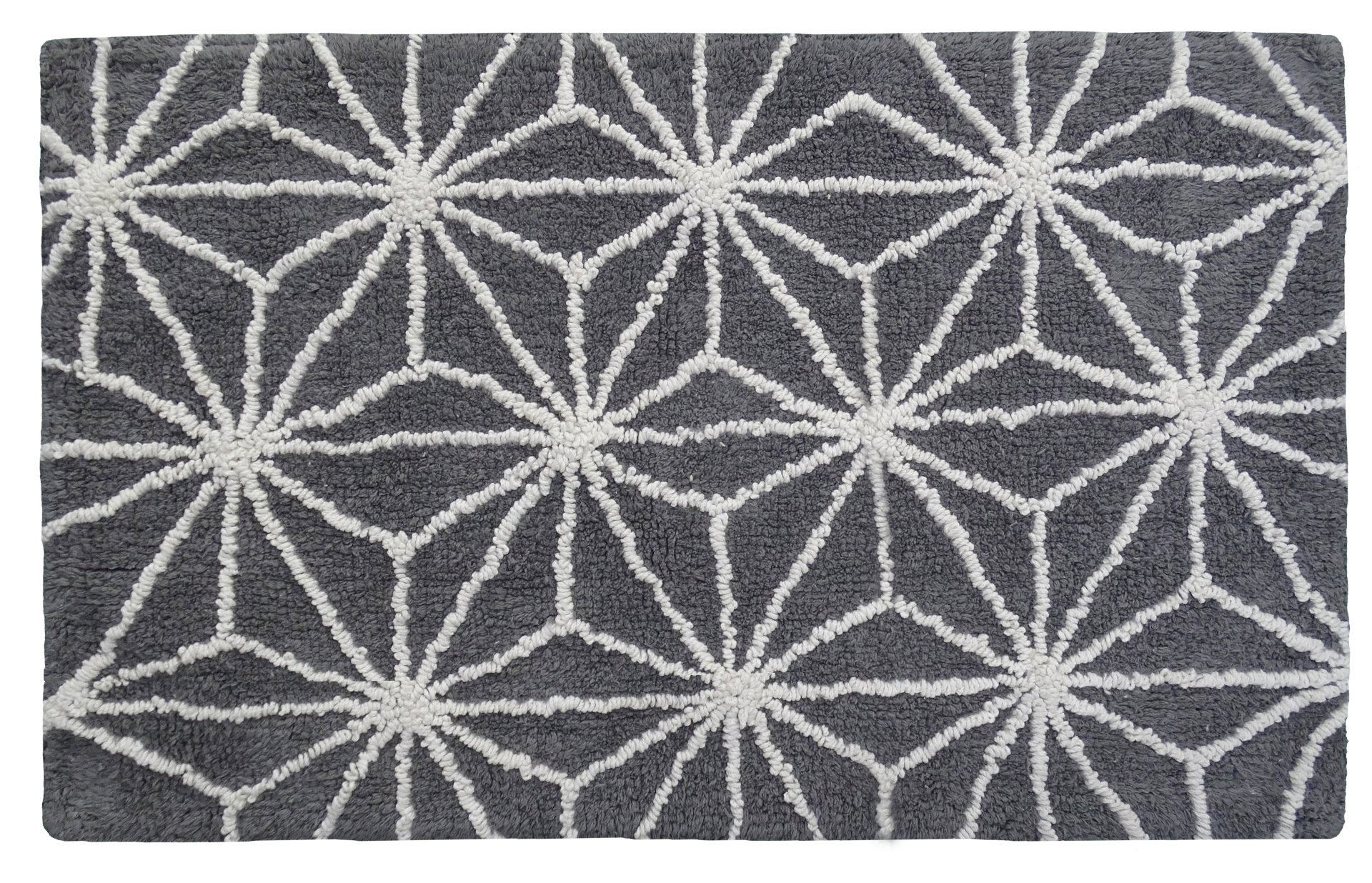CHICOS HOME Bath Rug Geometric Pattern in Grey & Ivory