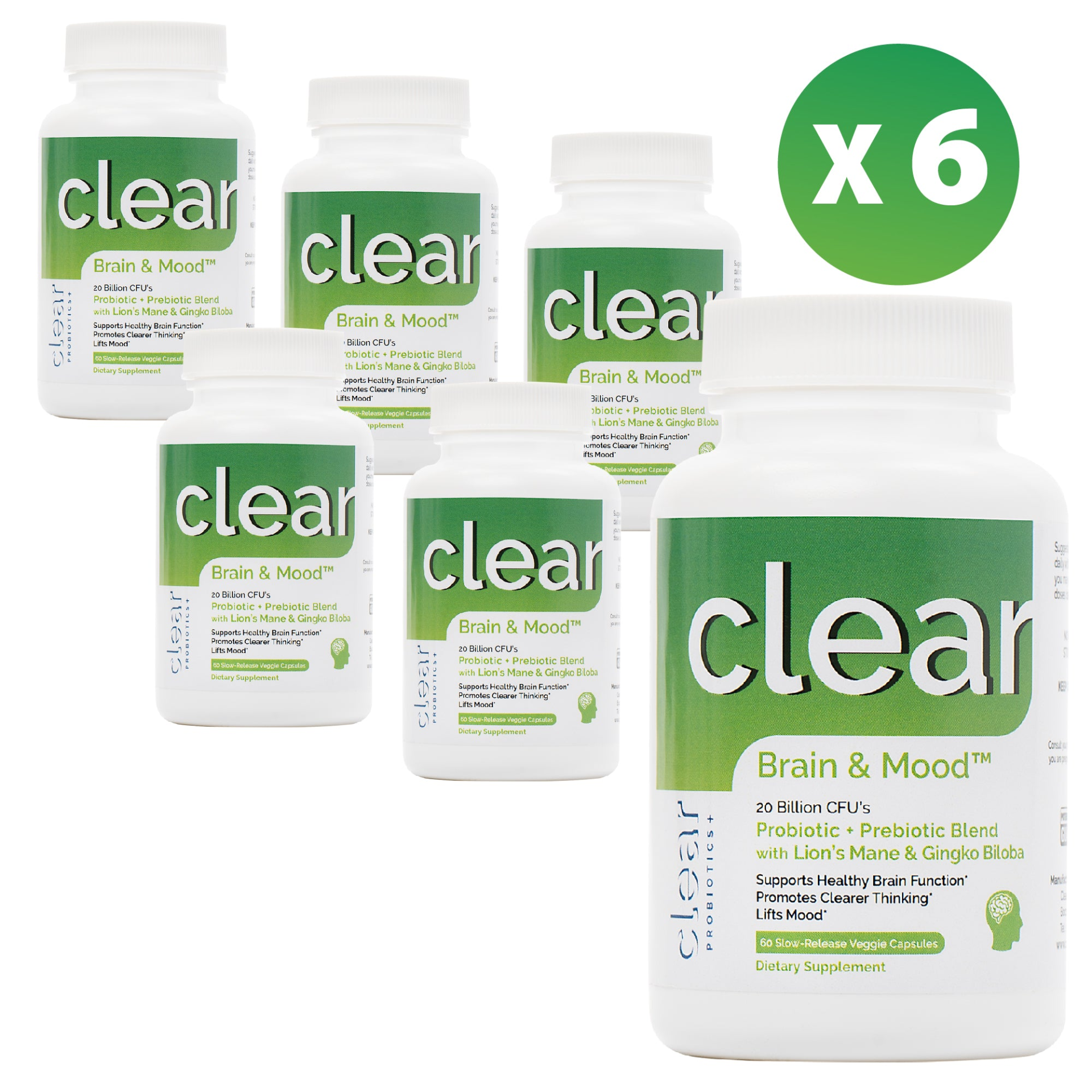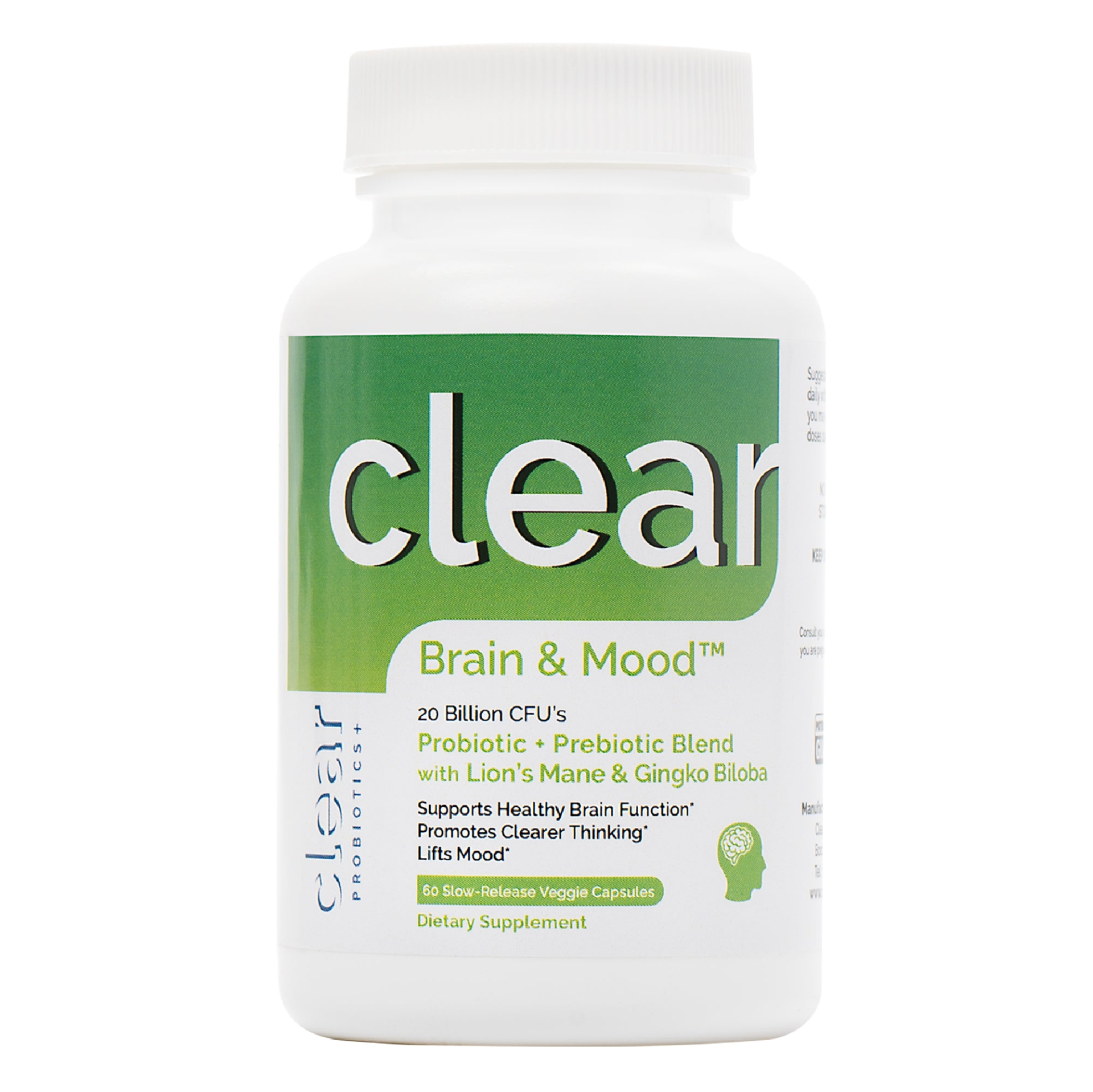 - 2 Probiotic Strains: Two probiotic strains, specifically selected to support brain clarity, memory, and functioning, as well as balanced mood