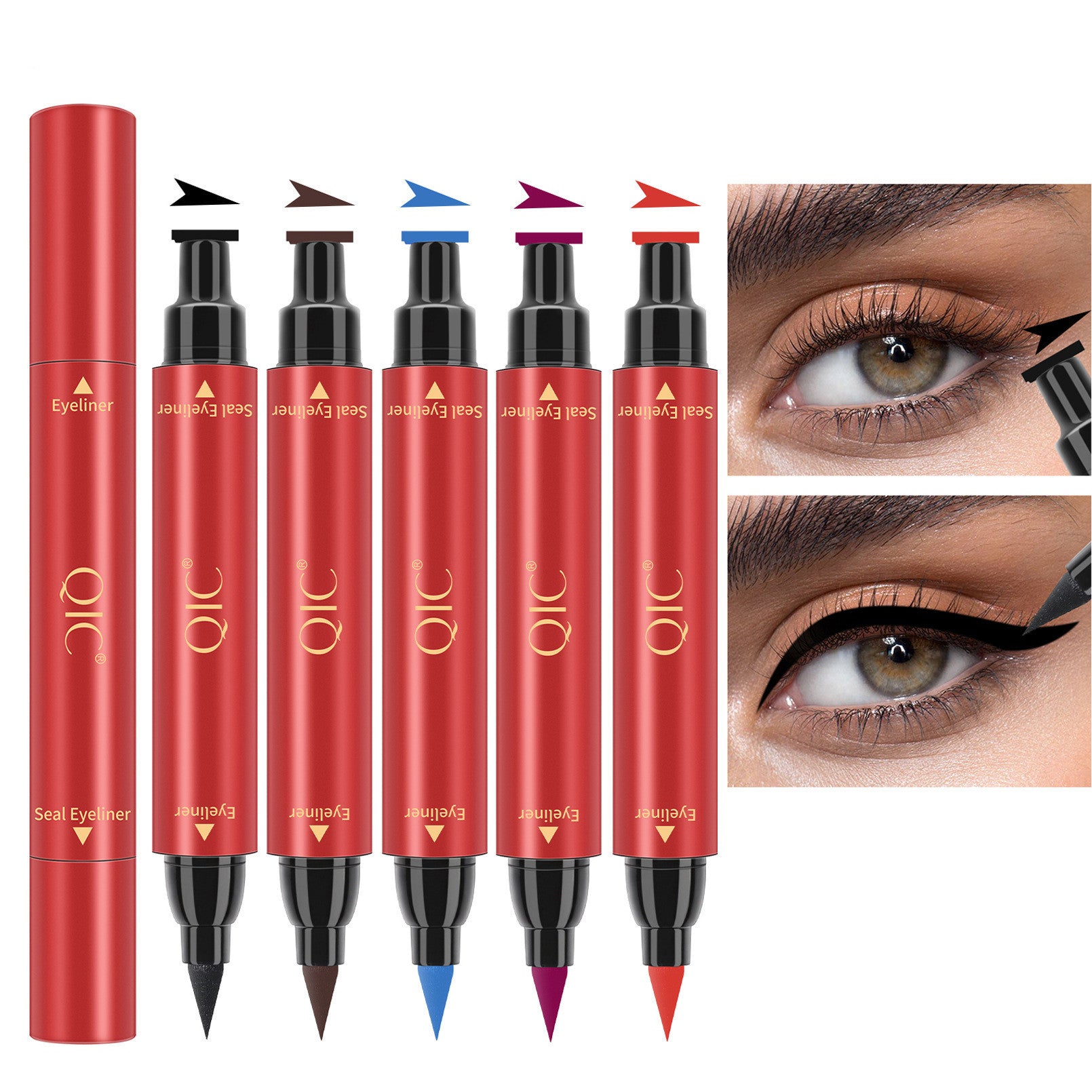 Colorful Double Head Triangular Seal Eyeliner Pen Waterproof And Non Dizzy Makeup