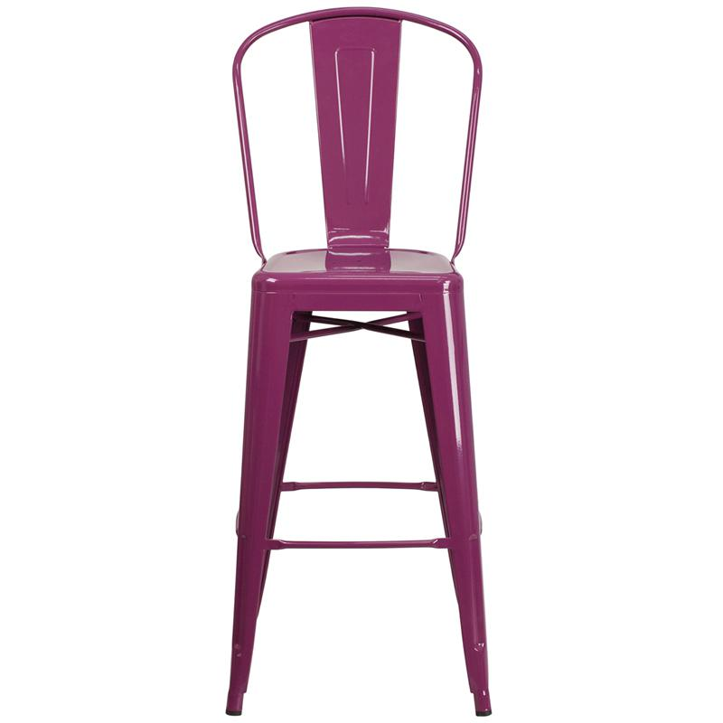 Commercial Grade 30" High Purple Metal Indoor-Outdoor Barstool with Back