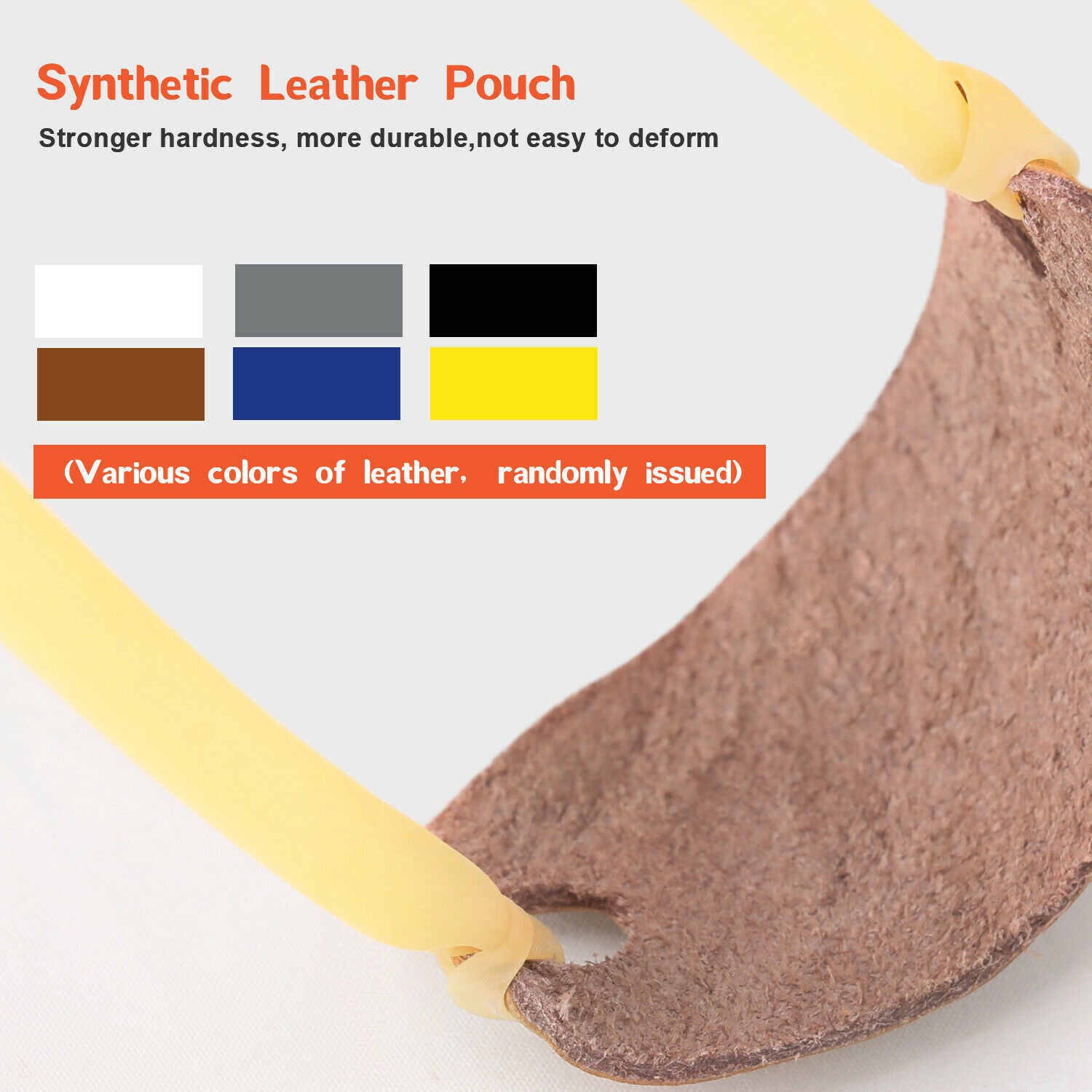 This deluxe Wrist-SlingShot is a lot of fun to shoot. With its light yet durable aluminum frame, this slingshot looks and feels great. Using pocket-sized surgical latex power bands you'll be able to shoot up to 100 yards for some serious damage. It is 7-1/2" tall and 3-1/2" wide when folded. The leather pouch provides a firm and positive grip for steady aim and superior accuracy. Great to use for target practice or shooting some cans in your backyard. Shoots steel ammo, BB pellets, plait shots, paintballs, small rocks, or any small round object. Folds to a compact size for easy portability.