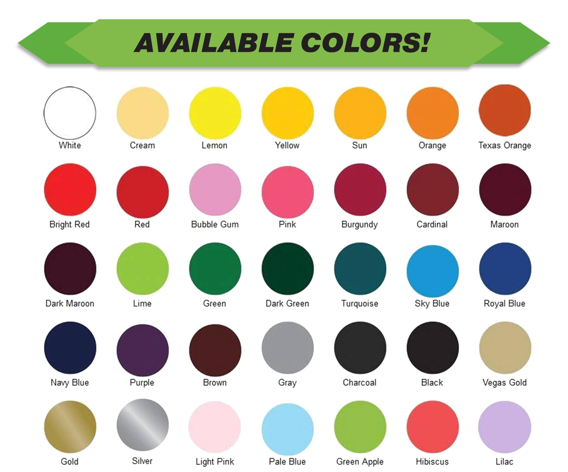 Choose vinyl size and color from the drop-down options on the listing. (Color choices can be seen in the listing photos. Please note due to different computer screen settings, color may differ slightly.