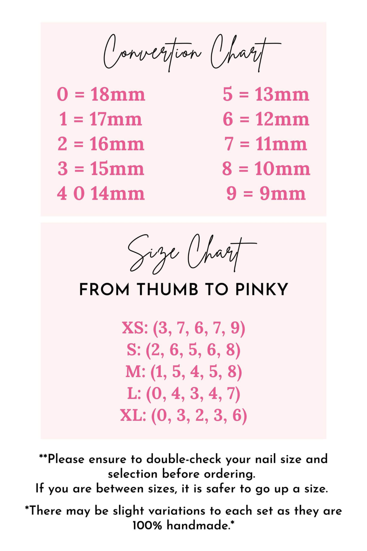 *The surest ways to ensure your press on nails will fit you perfectly and with a super natural look is ordering the 20 NAILS FULL SET or ordering beforehand a SIZING KIT of the same length and shape as the nails set you want.