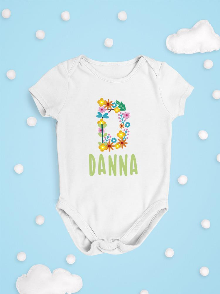Custom Name And Floral Initial. Bodysuit -Custom Designs