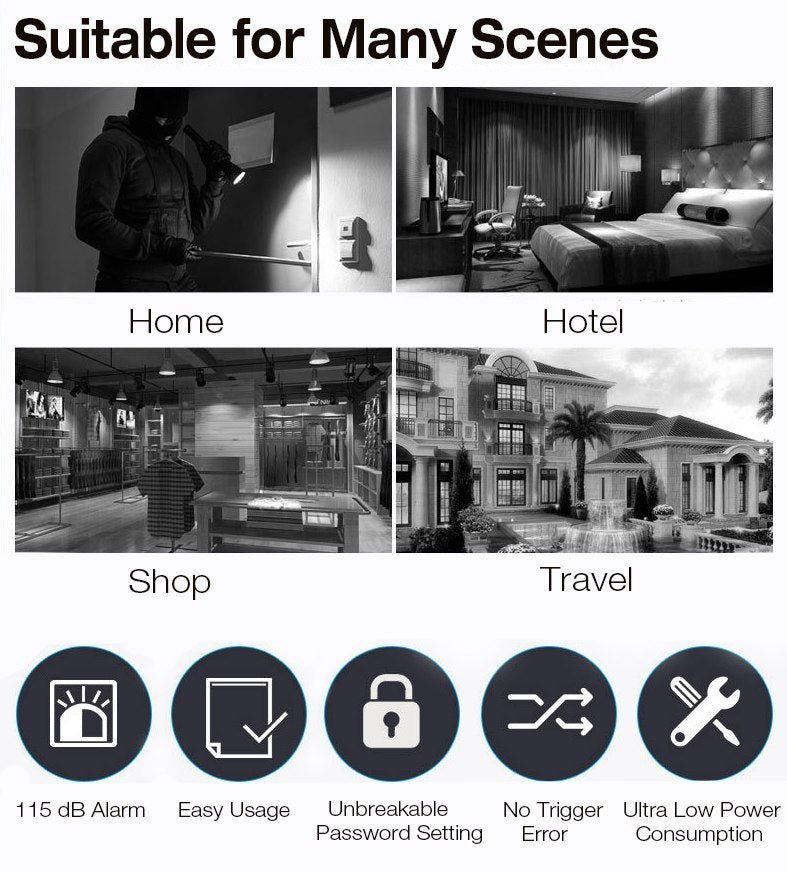 The product protects you with reliable magnetic sensor and extreme loud 115dB alarm, keep security for your house when nobody at home.