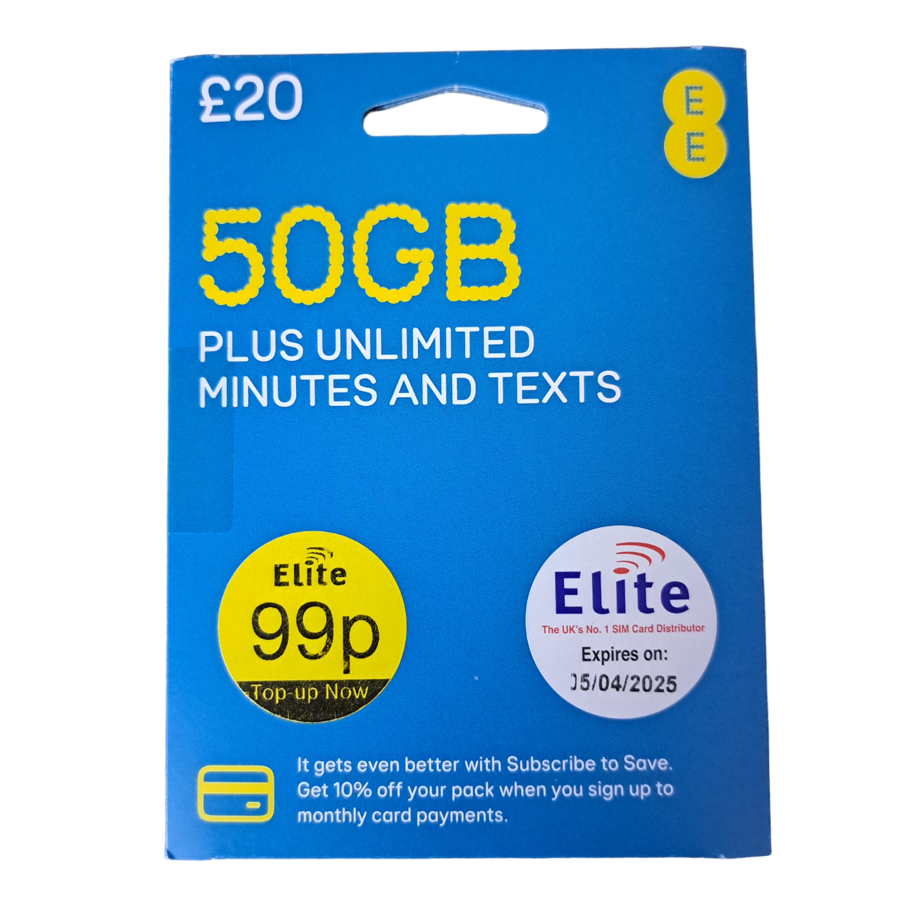 EE Pay As You Go Sim Card - £20 Subscription Pack