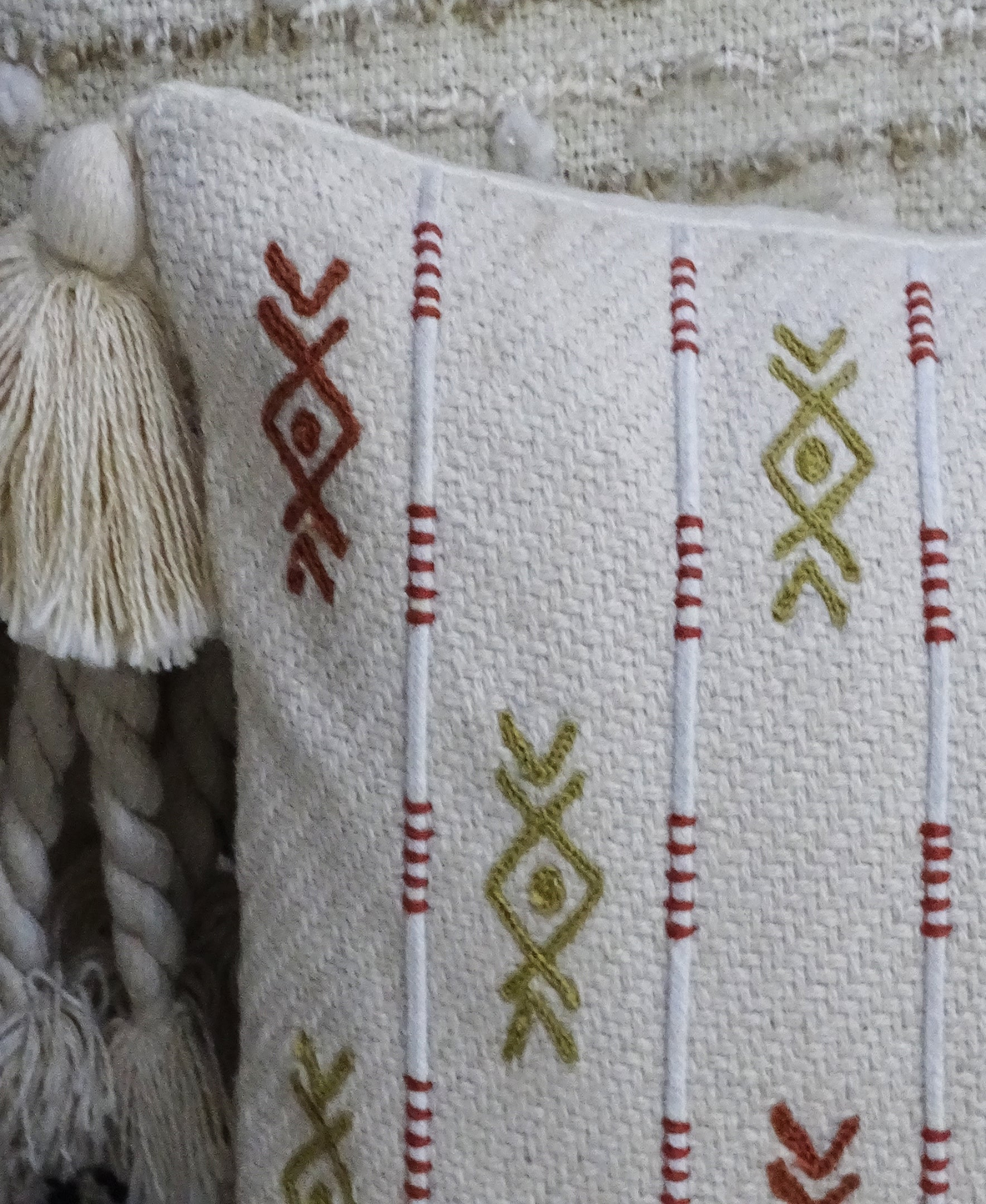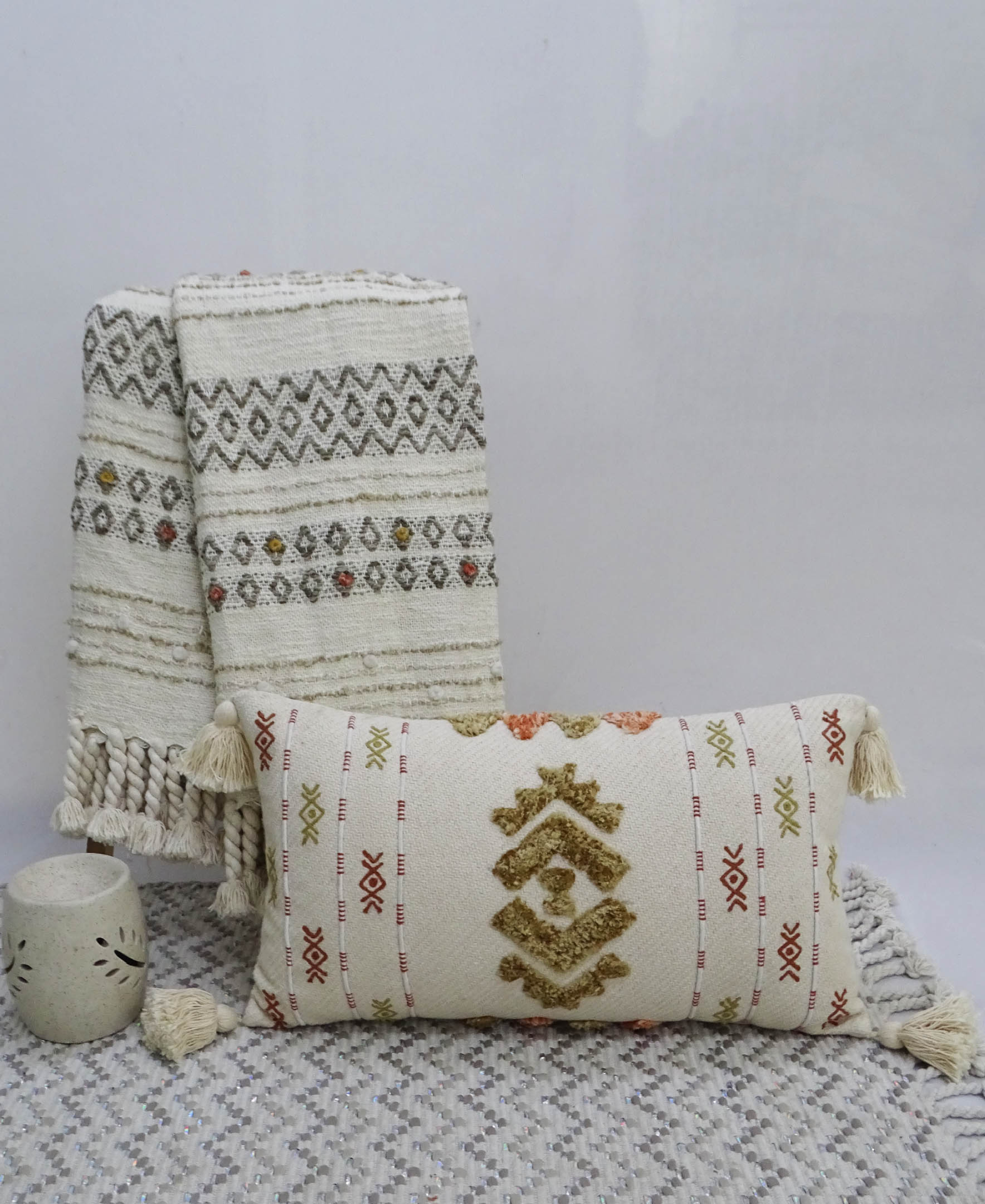 14 inches X 24 inches handwoven embroidery throw pillow with tassels