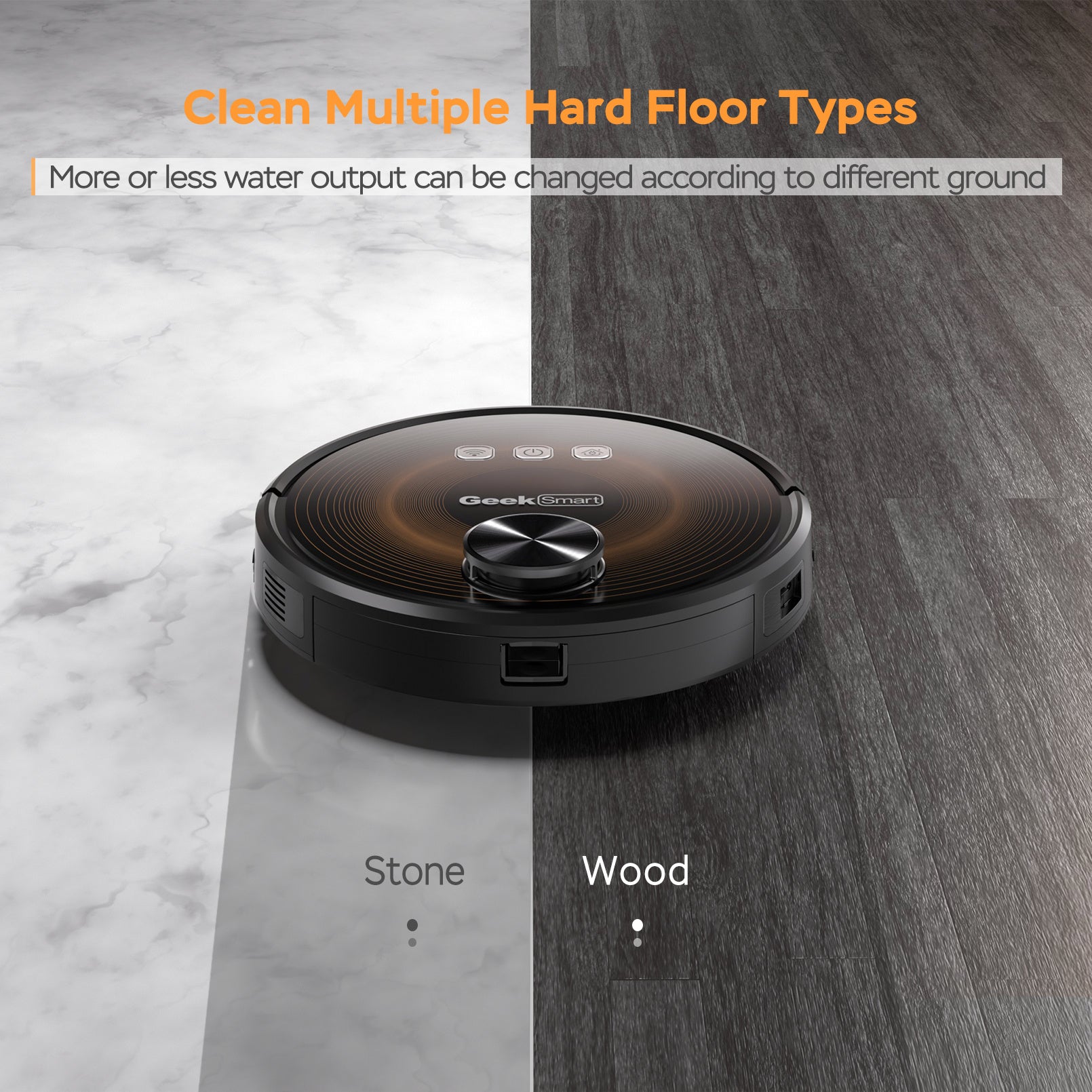 - 【3-IN-1 Robot Function】 The Geek Smart robot features a combination of sweeping, mopping and vacuuming. L8 allows twp water output modes to be set to make cleaning more efficient by mopping and vacuuming at the same time. With its extra-large 500ml water tank, the L8 mop can mop for long periods of time and solve large space problems.