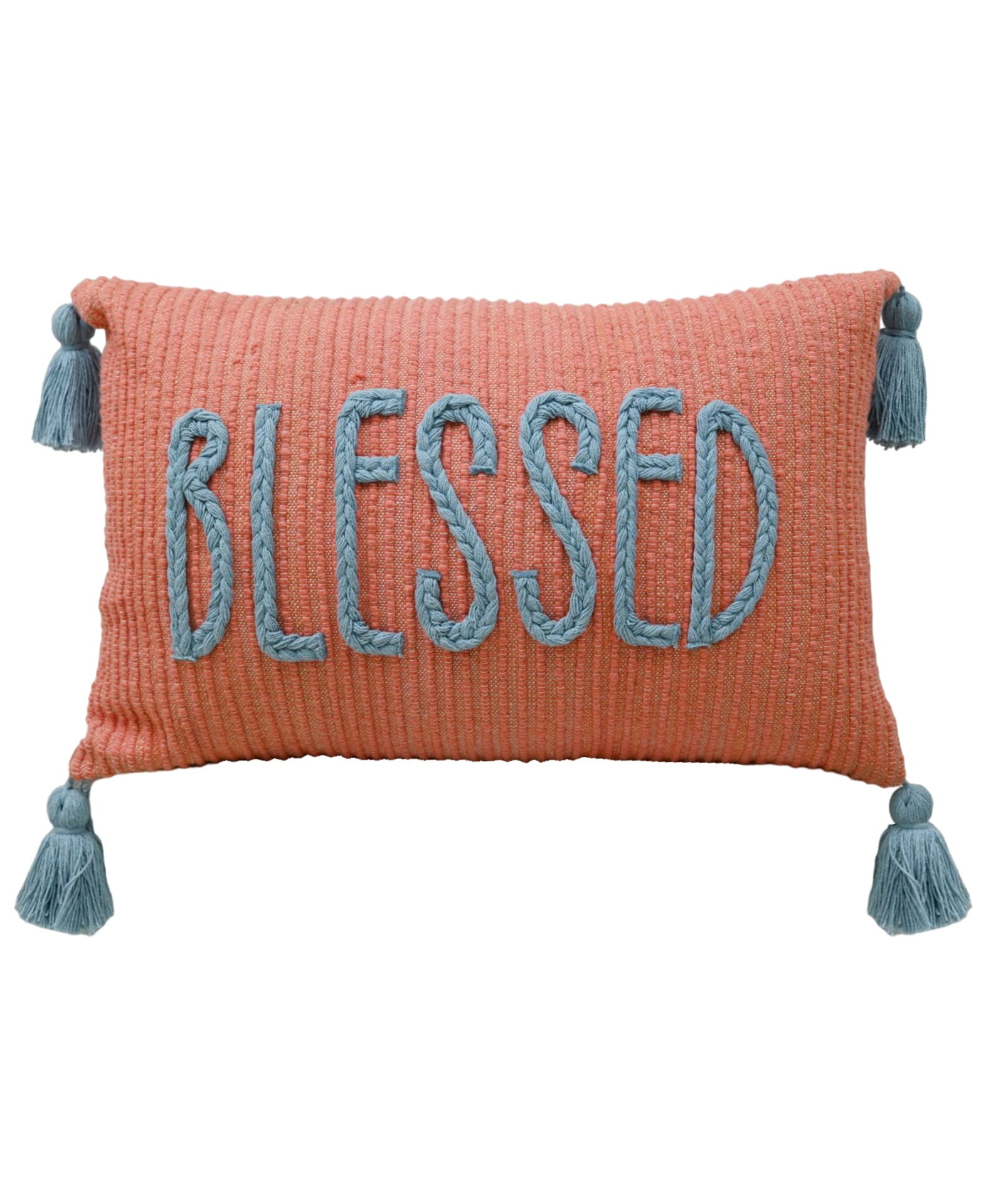 14"X24" Handwoven pillow with braid couching and corner tassels. Includes: 1 Decorative Pillow with high quality insert Pillow is designed, filled and finished in the USA. 60 Days limited manufacturing warranty Zipper Closure for easy removal of insert. Back of the pillow has solid color with no pattern. Crafted with care and handwoven to perfection, this pillow's unique texture adds a beautiful depth to your space.