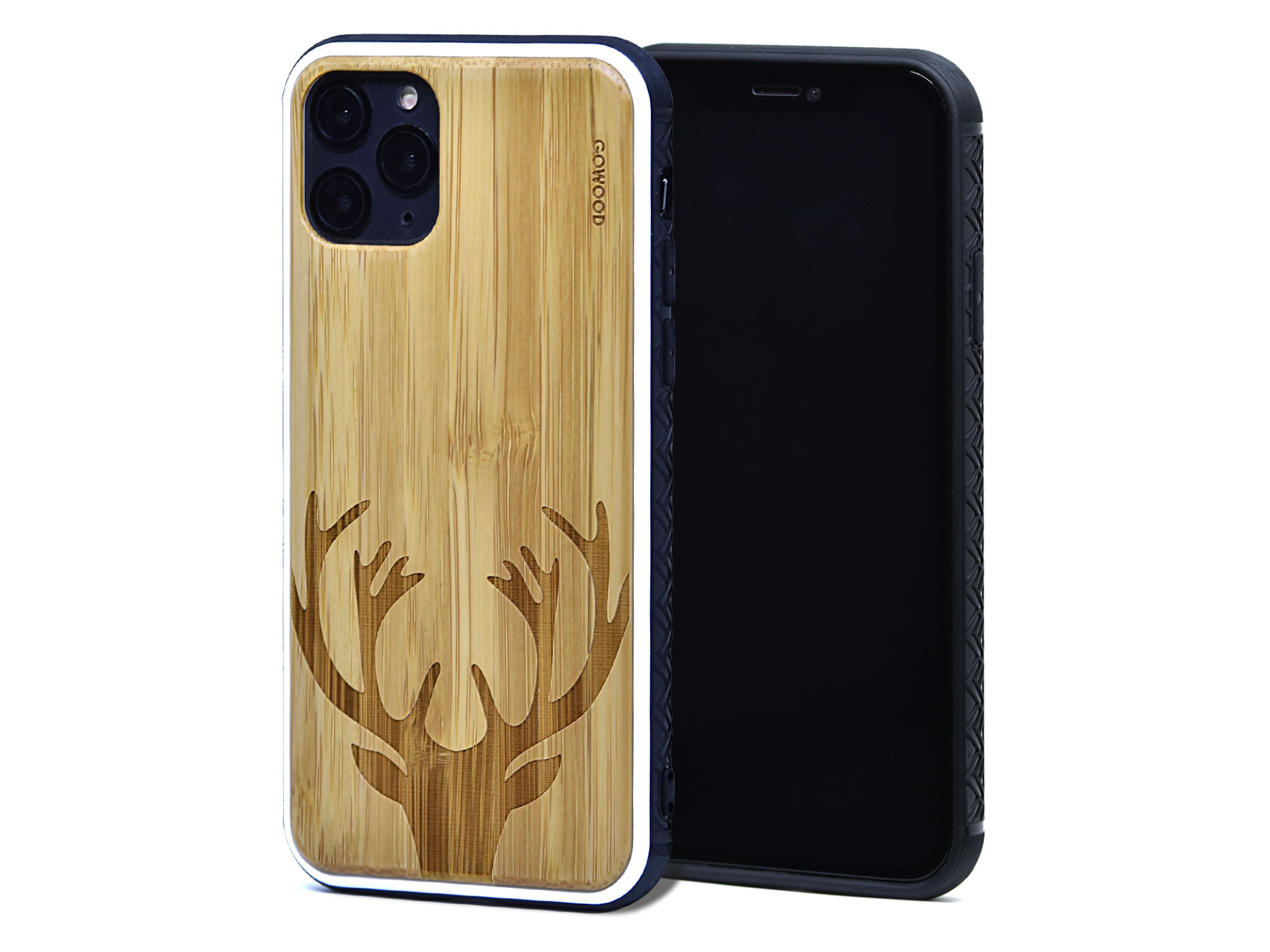 iPhone 11 Pro wood case deer engraved bamboo backside with TPU bumper