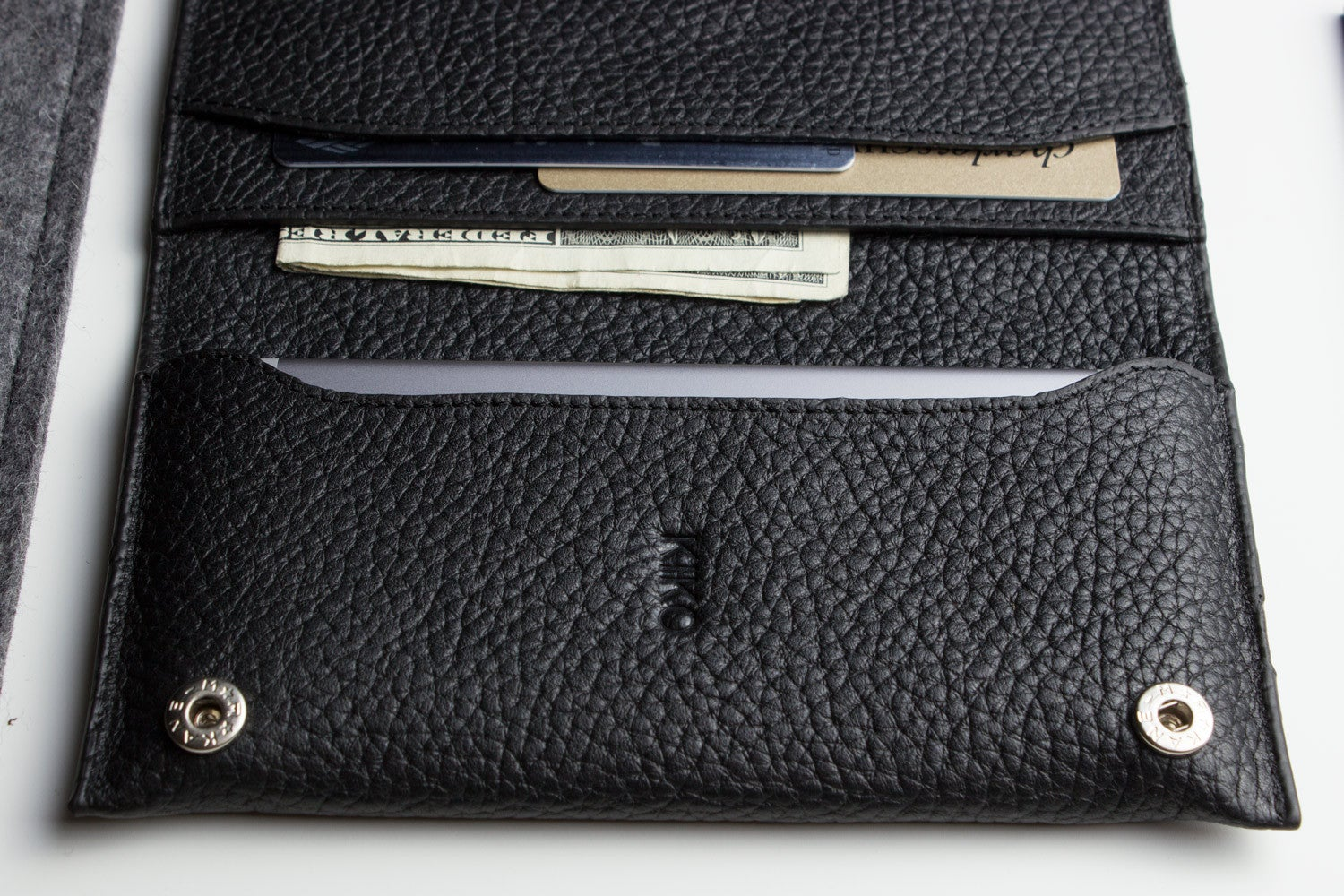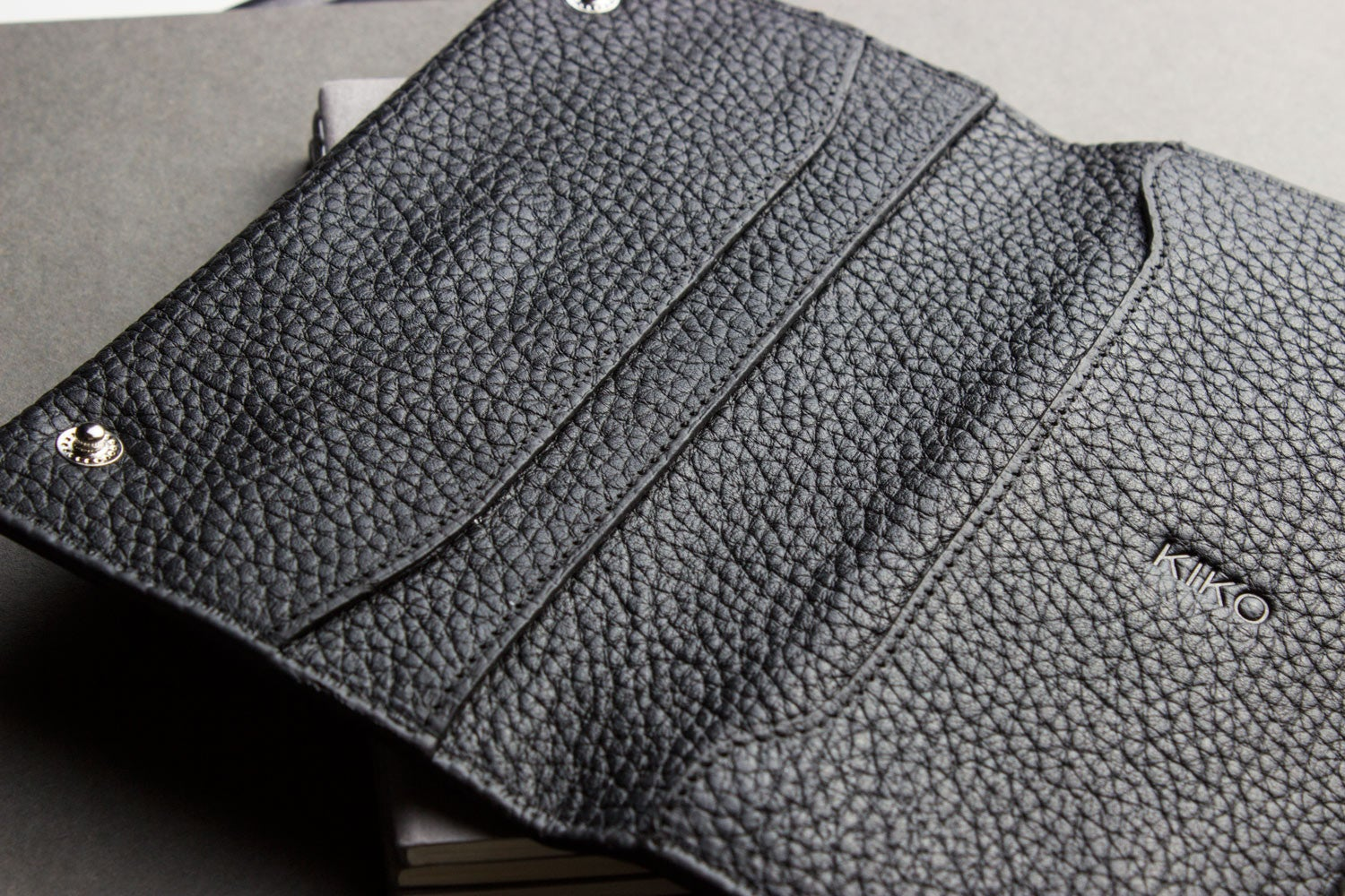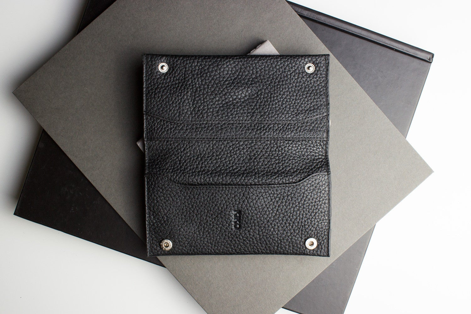 Our iPhone Wallet is handcrafted with pebble cowhide leather. The Wallet fits the iPhone 6 and 6S featuring a button closure with additional pockets for cards and cash.