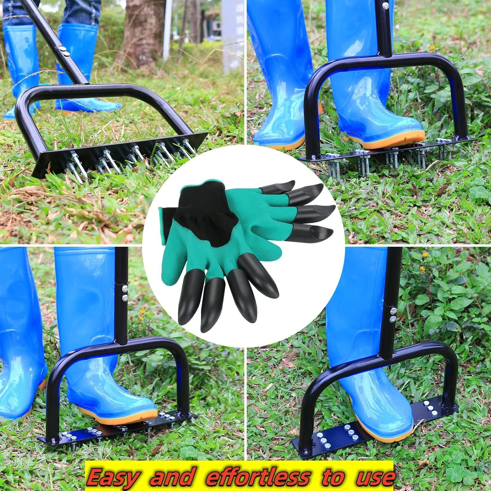 Durable Lawn Aerator: This lawn aerator tool features a durable steel frame construction with a heavy-duty anti-rust coating that effectively prevents the weeder from rusting in wet grass, extending the life of the spike lawn aerator and keeping you company for longer.