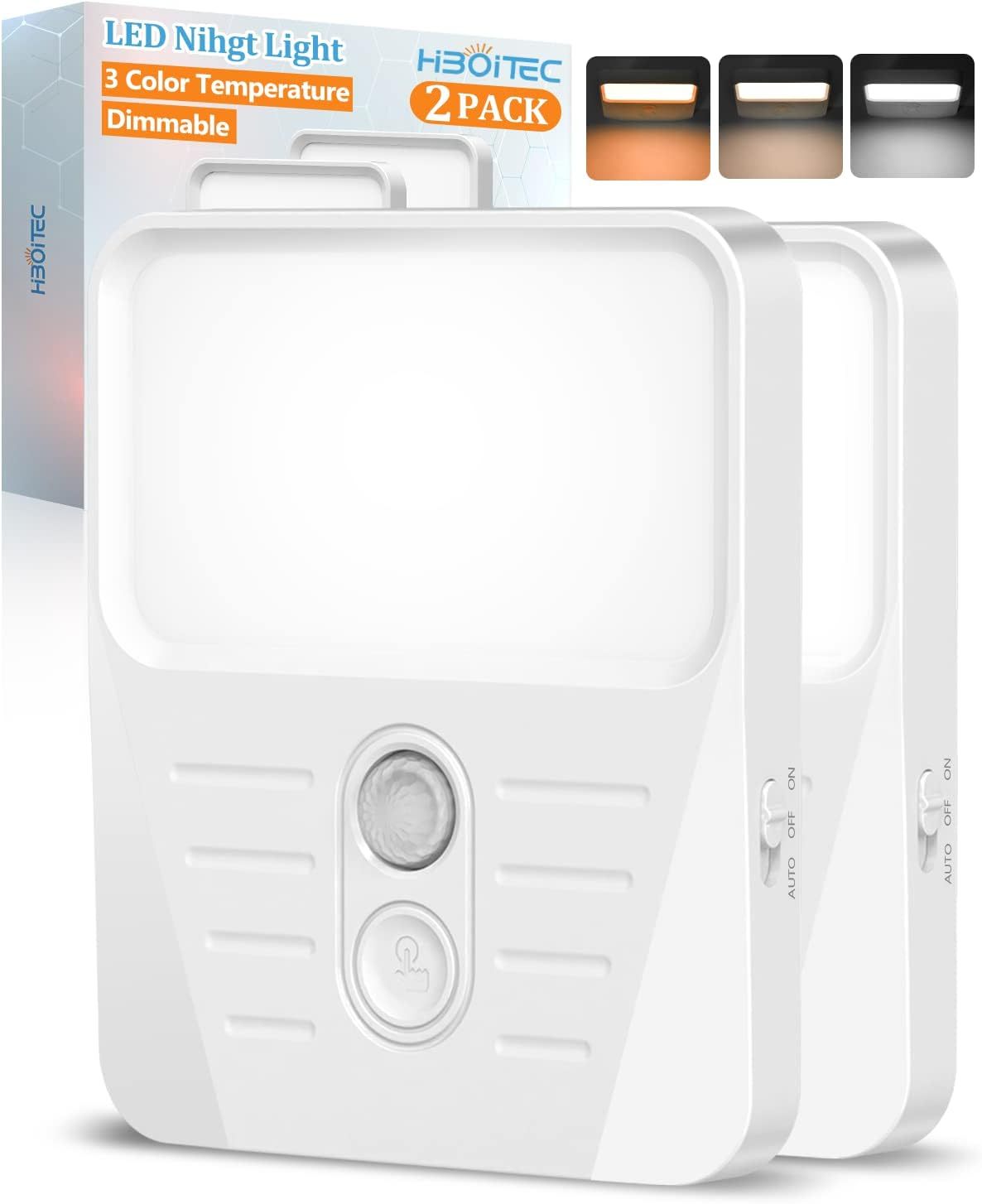 LED Night Lights, 3 Color Temperatures Motion Sensor Night Light, Rechargeable Battery Dimmable Night Light, Under Cabinet Lights, Wireless Wall Lights For Bedroom, Bathroom, Stairs, Hallway, 2 Packs