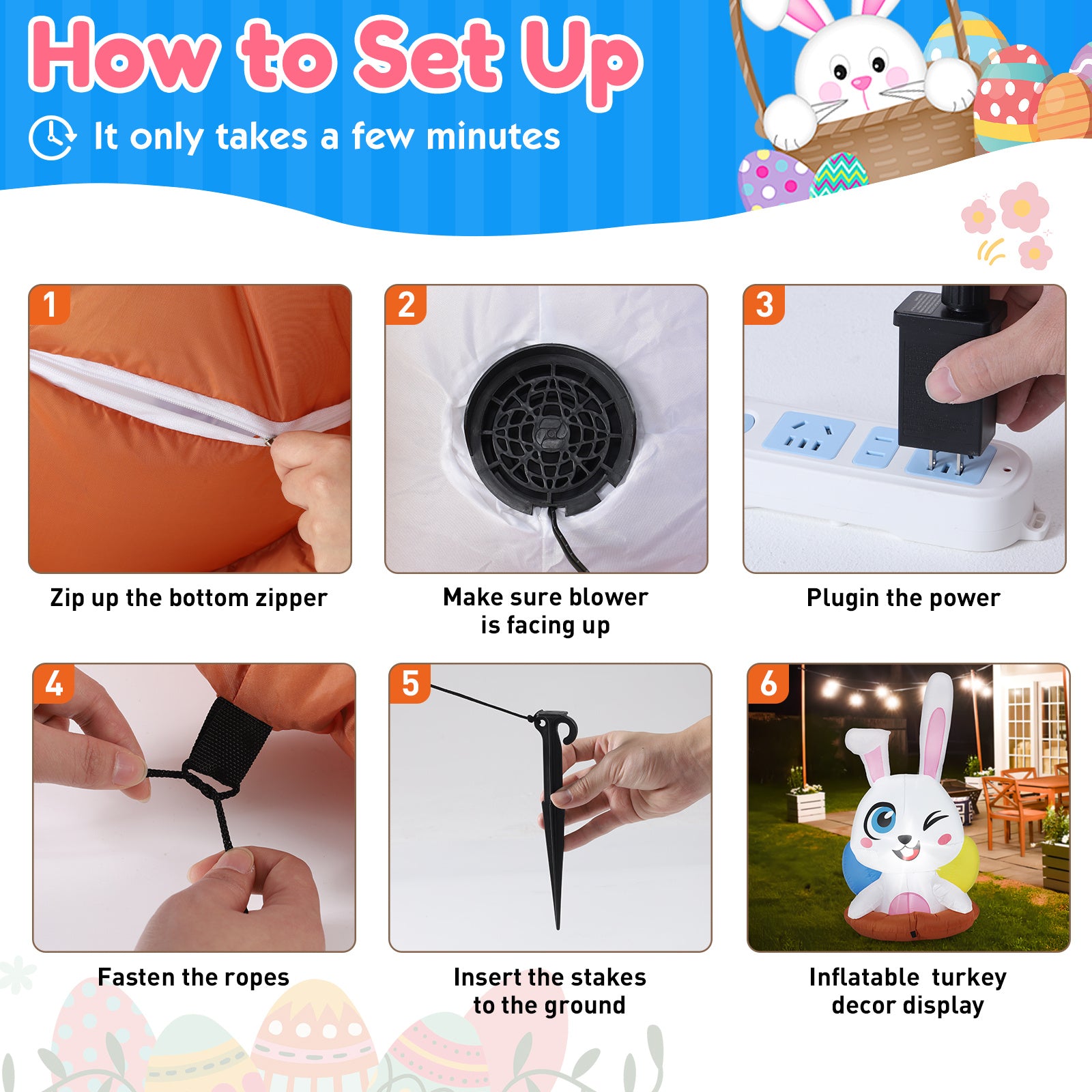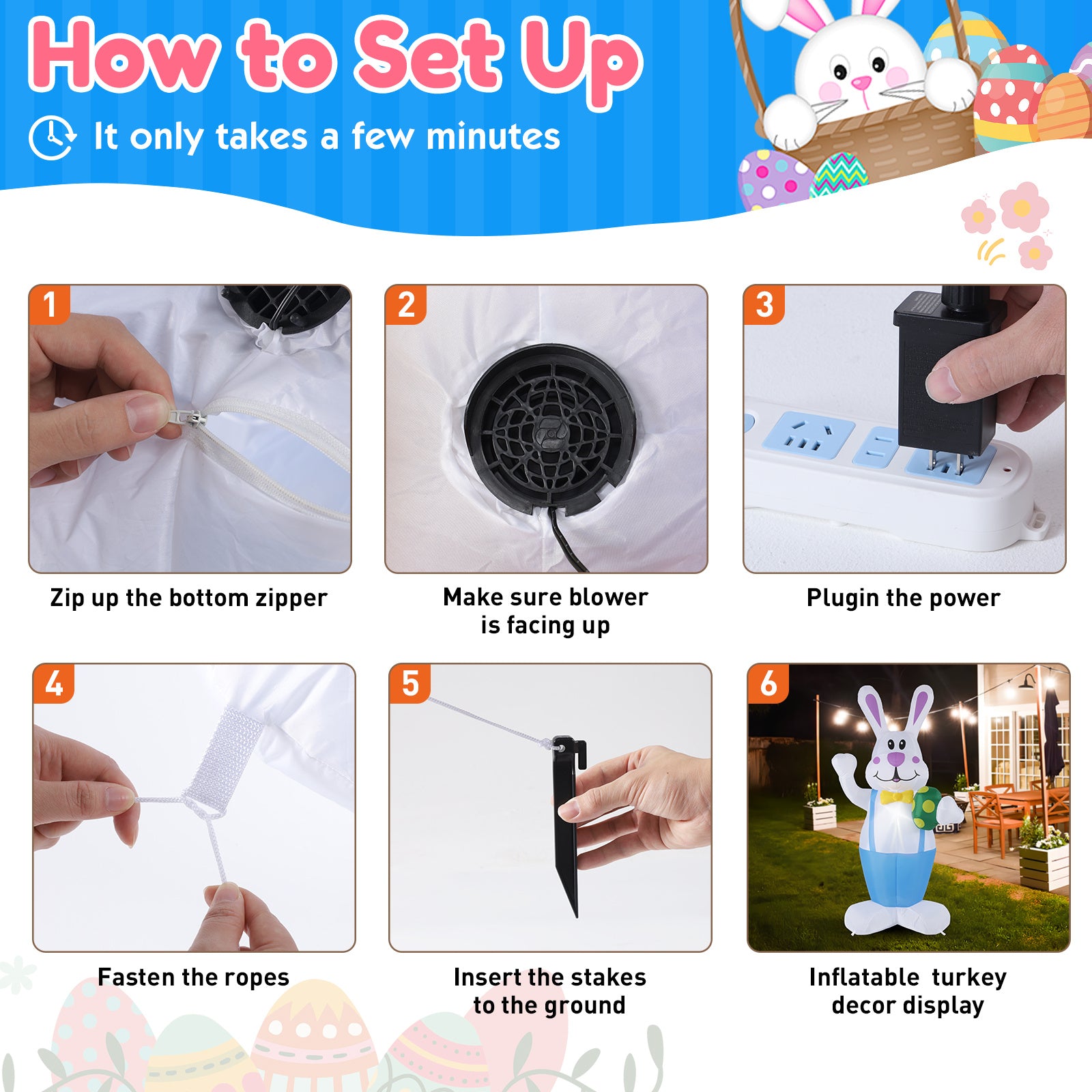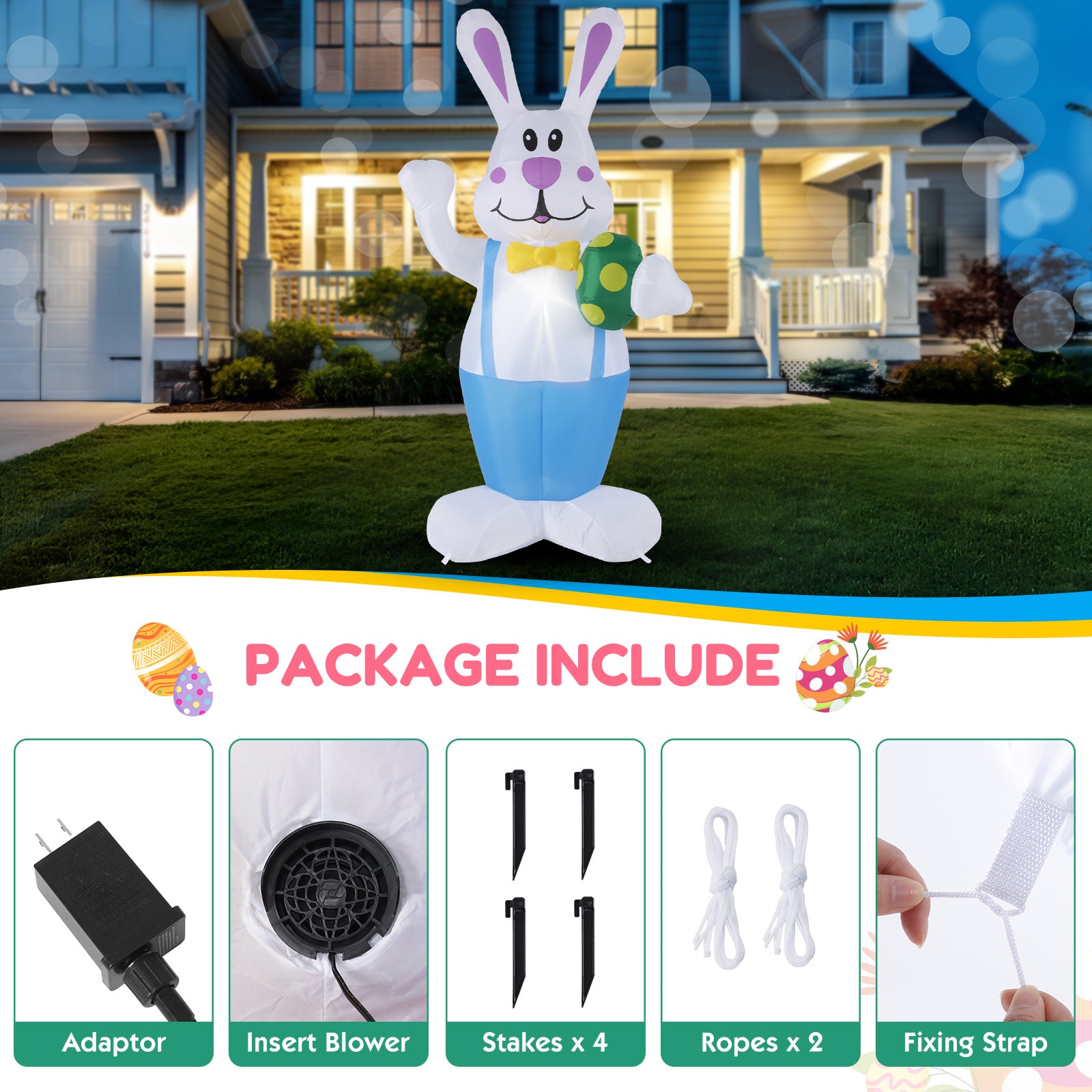 Luminous LED Cartoon Easter Inflatable Rabbit
