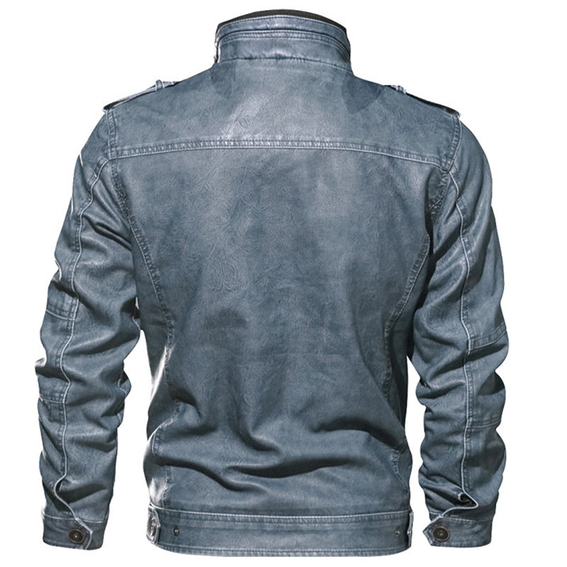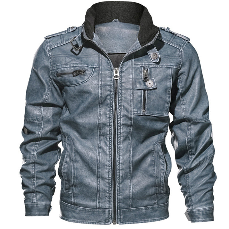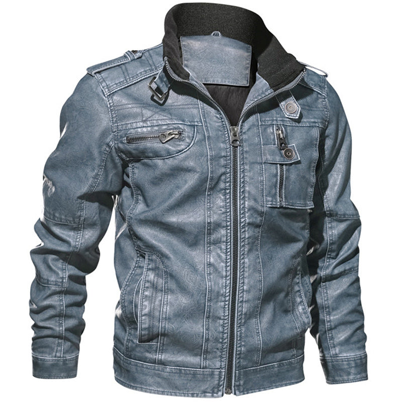 Men PU Leather Jacket Casual Thick Motorcycle Leather Jacket Winter Windproof Coat