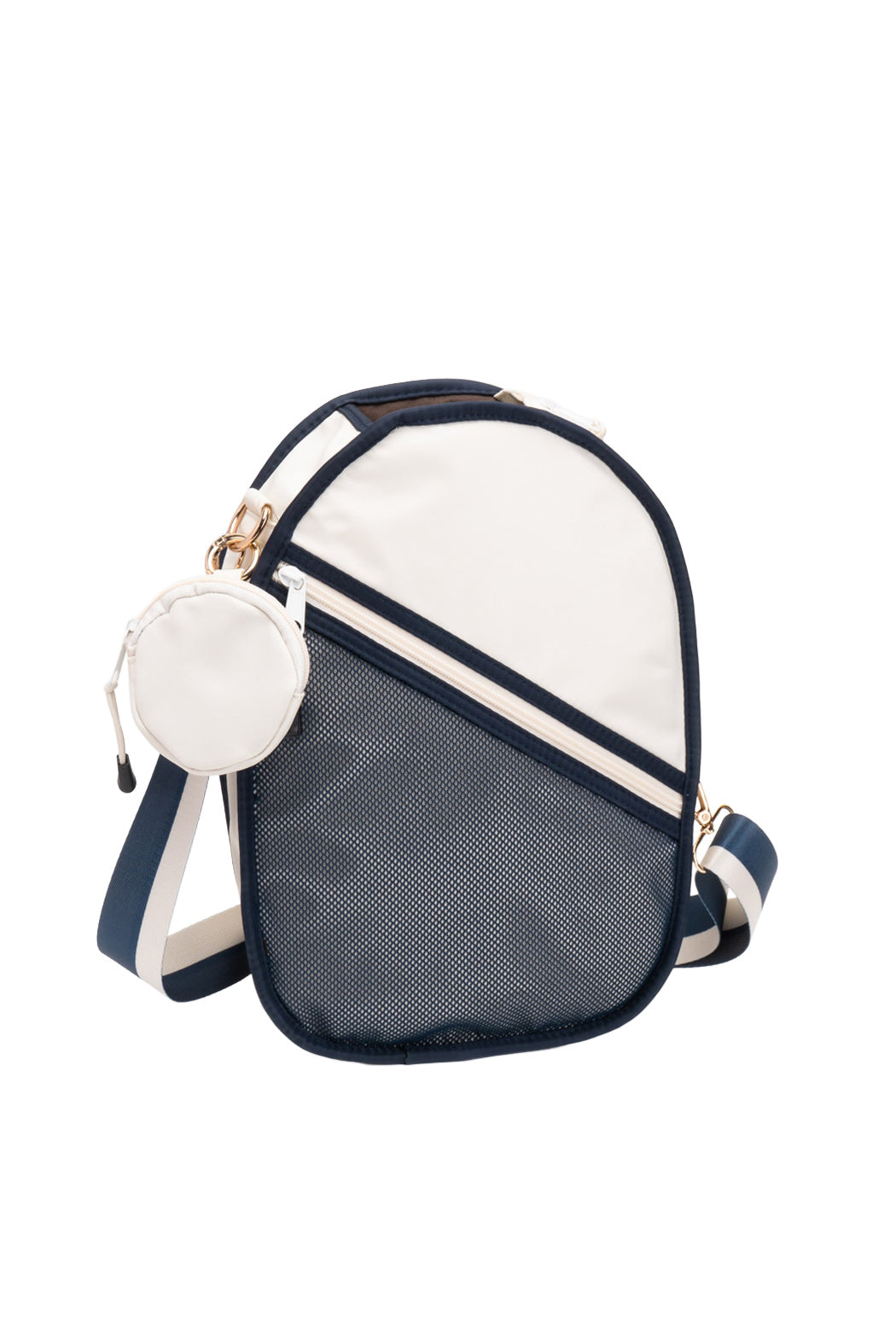 Hit the court in style and convenience with our Pickleball Sling Crossbody Bag! Perfectly sized at 9.5" X 2.4" X 13.4", with an additional 3" X 3" small bag, adjustable and attachable strap, and zipper closure. Keep your essentials secure in the outside zipper pocket. Game on!