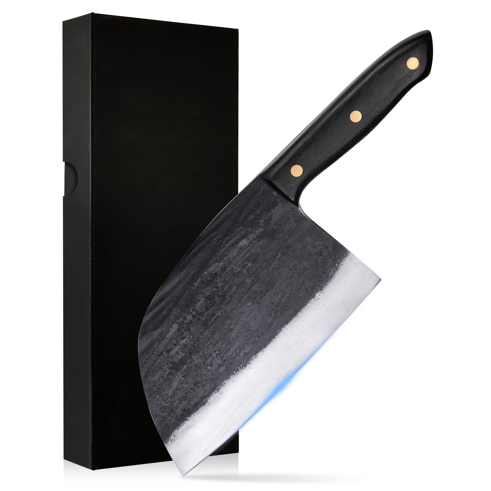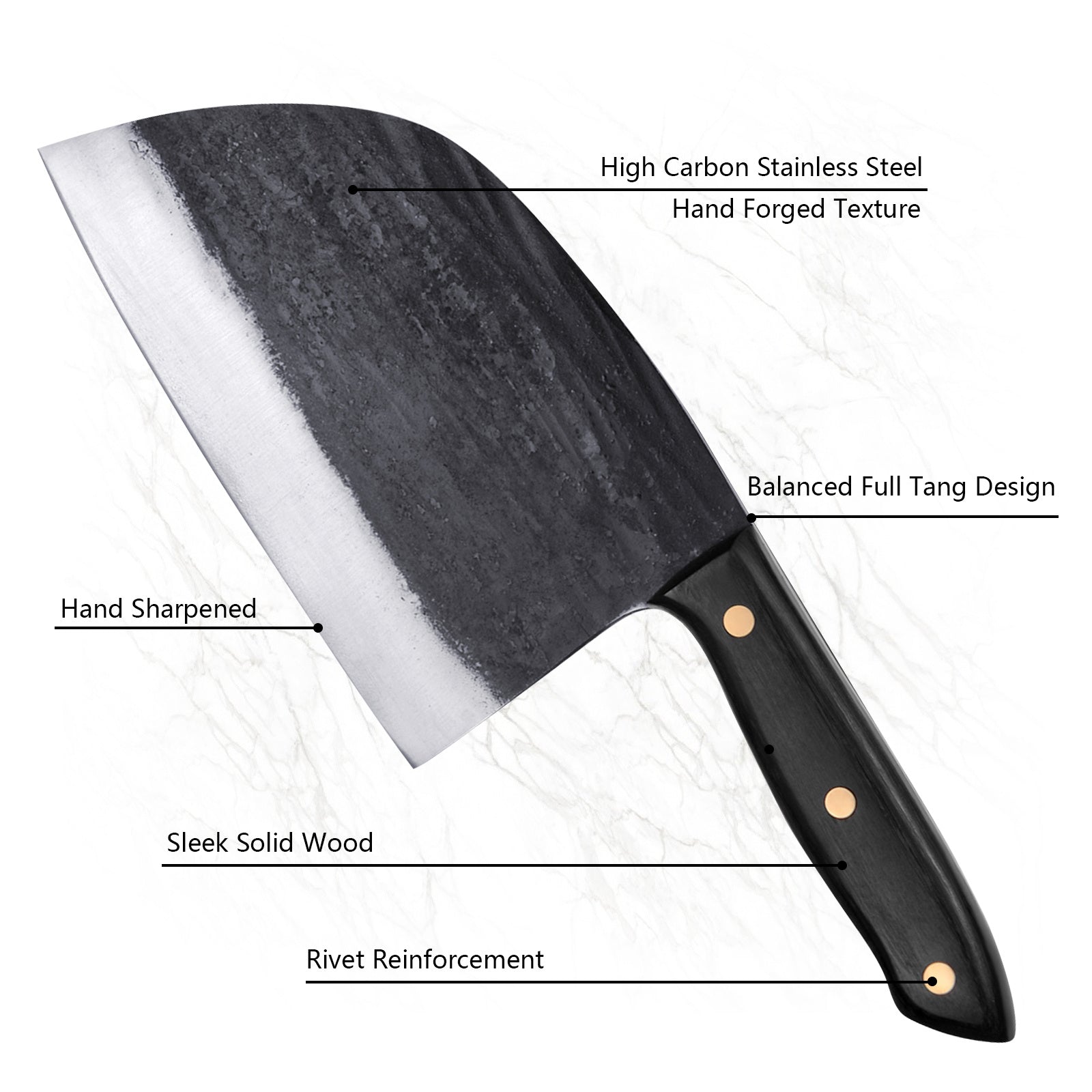 - 【Hammered Butcher Knife】The sharp butcher knife is forged by traditional hand. After a series of continuous operating cycles such as quenching, hammering, high-temperature tempering, and clamping, the sharp butcher knife is formed. Hand-forged knives are more durable than machine-made kitchen knives.