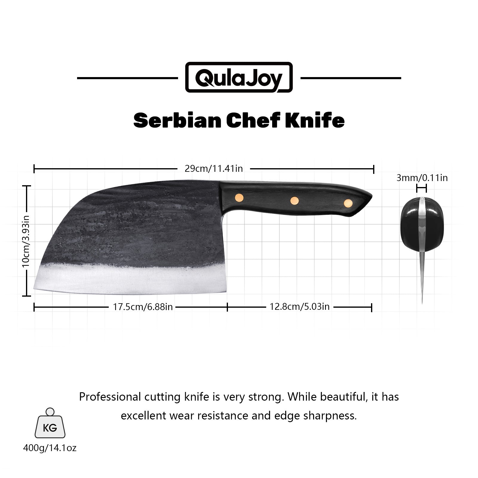 Qulajoy Serbian Chef Knife 6.7 Inch - High Carbon Steel Meat Cleaver - Professional Japanese Full Tang Hammered Cutting Knife For Kitchen Camping BBQ Outdoor