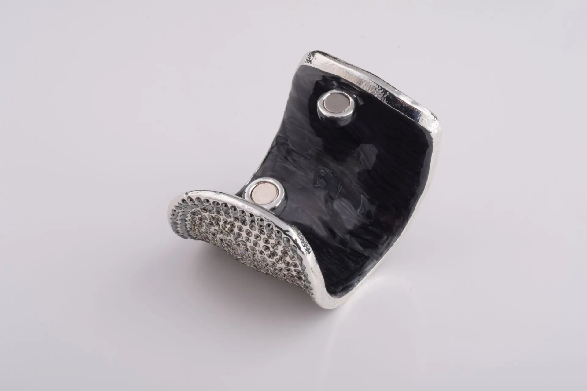 • The trinket box has a magnetic fastener to secure the closure.