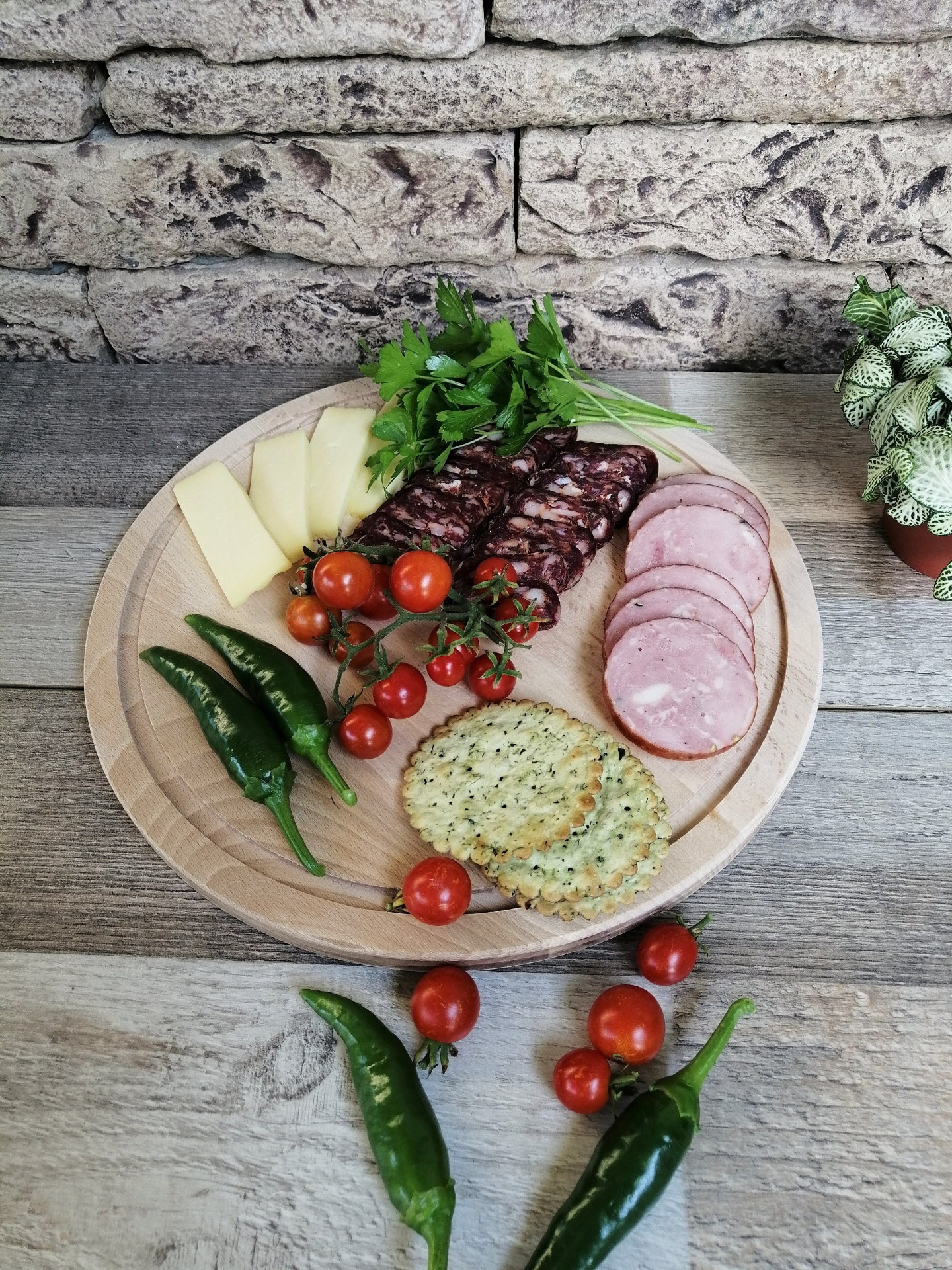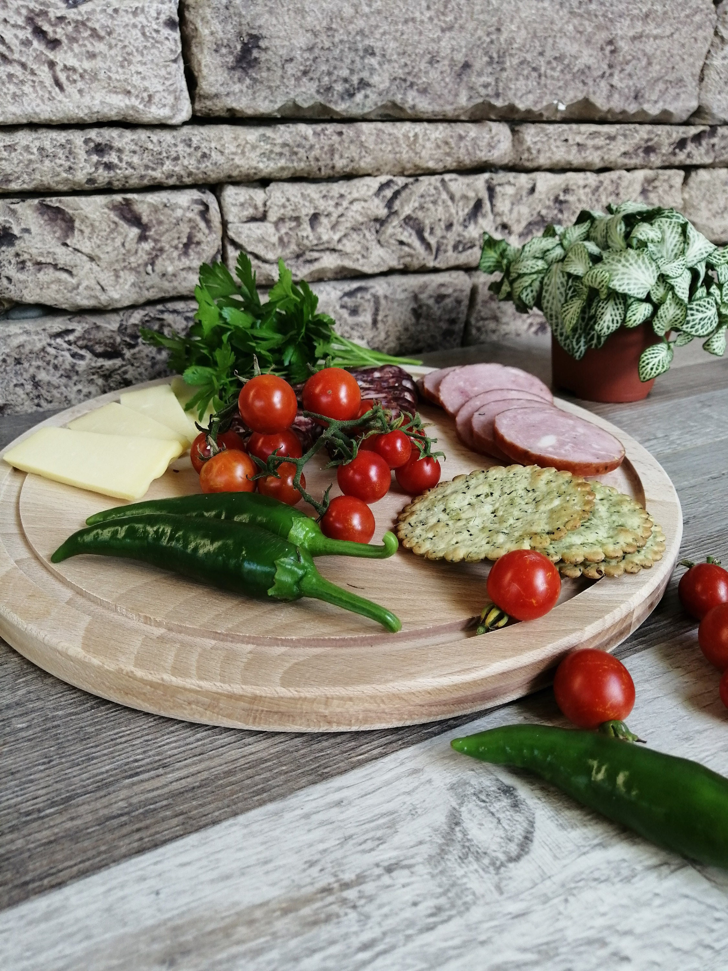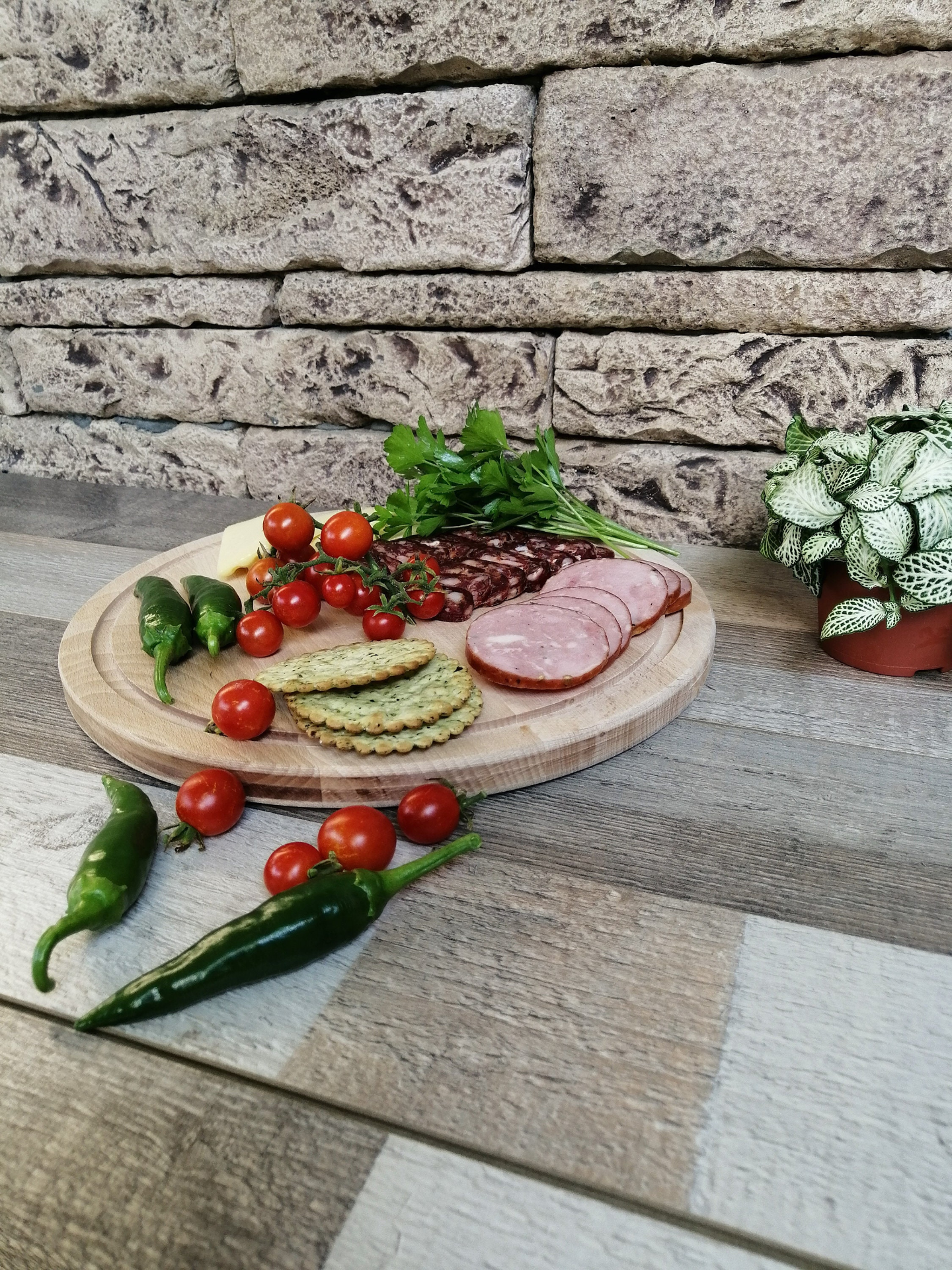 Round Charcuterie Board, Serving Cheese Platter, Wood Serving Tray