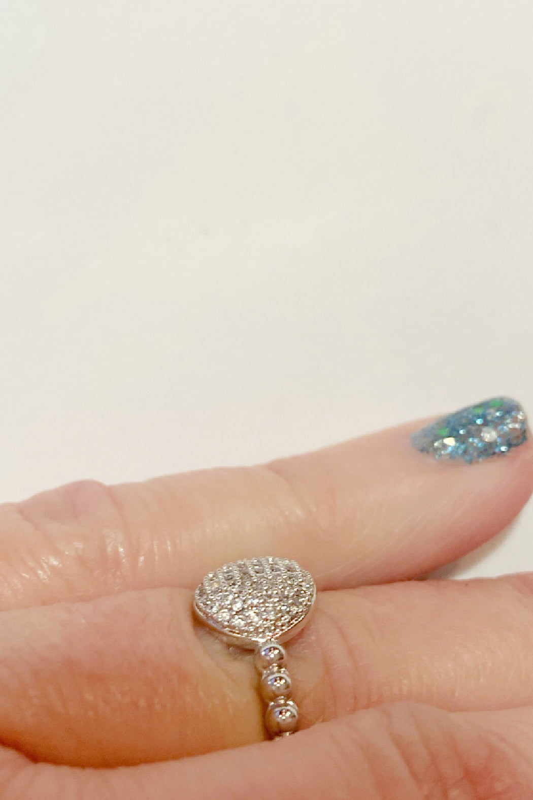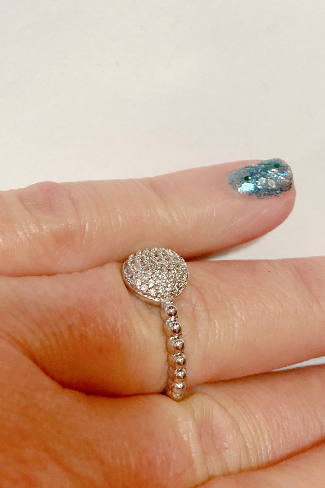 This Silver Round Cz Pave Ring is the perfect bling for any occasion, with its brilliant sparkly cubic zirconias in a round dome ring. The band is made of small dots around the entire circumference. Lead and nickel compliant.