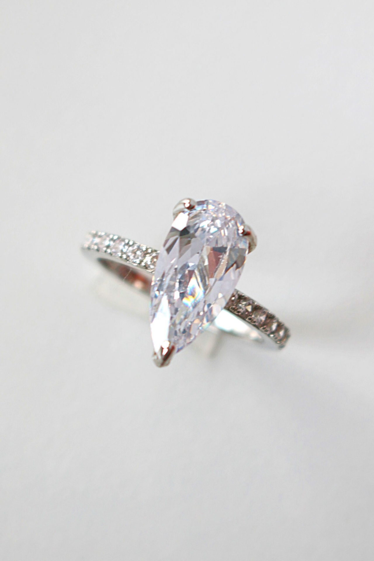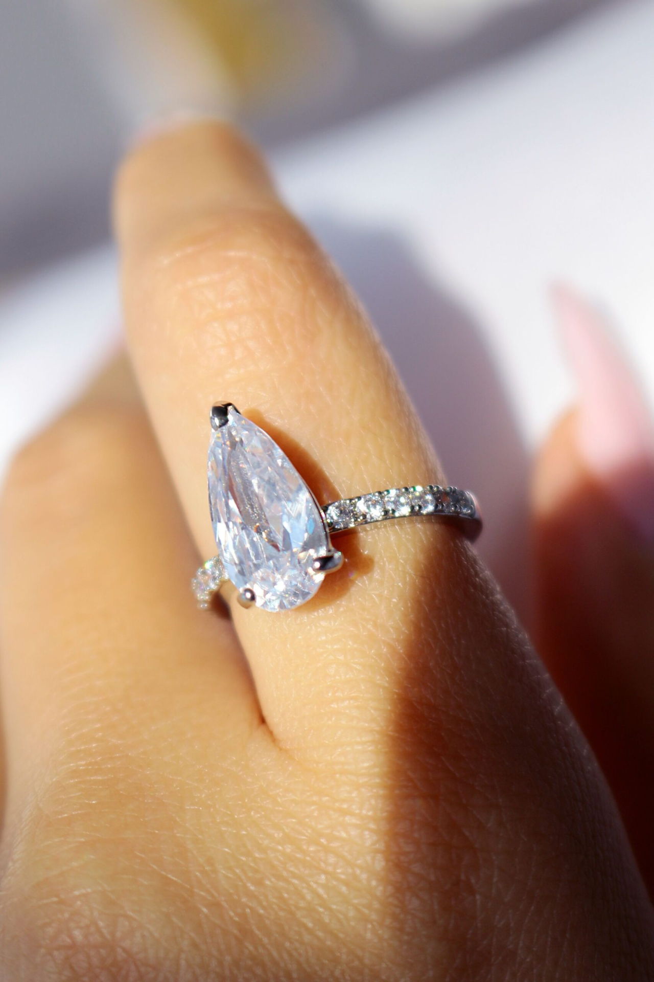925 silver cubic zirconia ring with beautiful pear shape central stone.