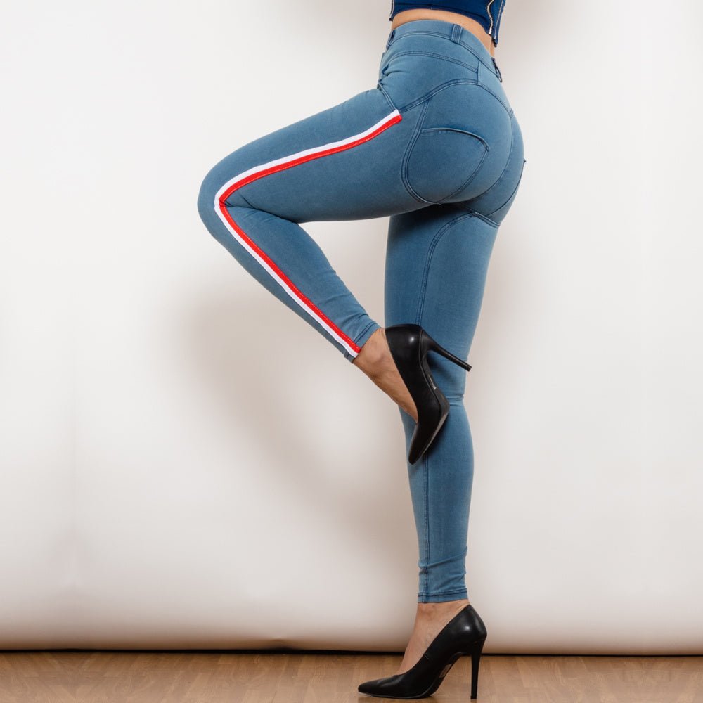 Shascullfites Melody Side Striped Middle Waist Skinny Jeans Bum Lift Leggings Woman Sexy Push Up Jeans Denim Pencil Pants