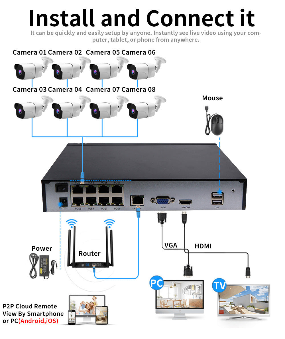 PC/laptop remote: supports web,PC client "VMS"; iPhone/Andriod/Pad free application "Danale"