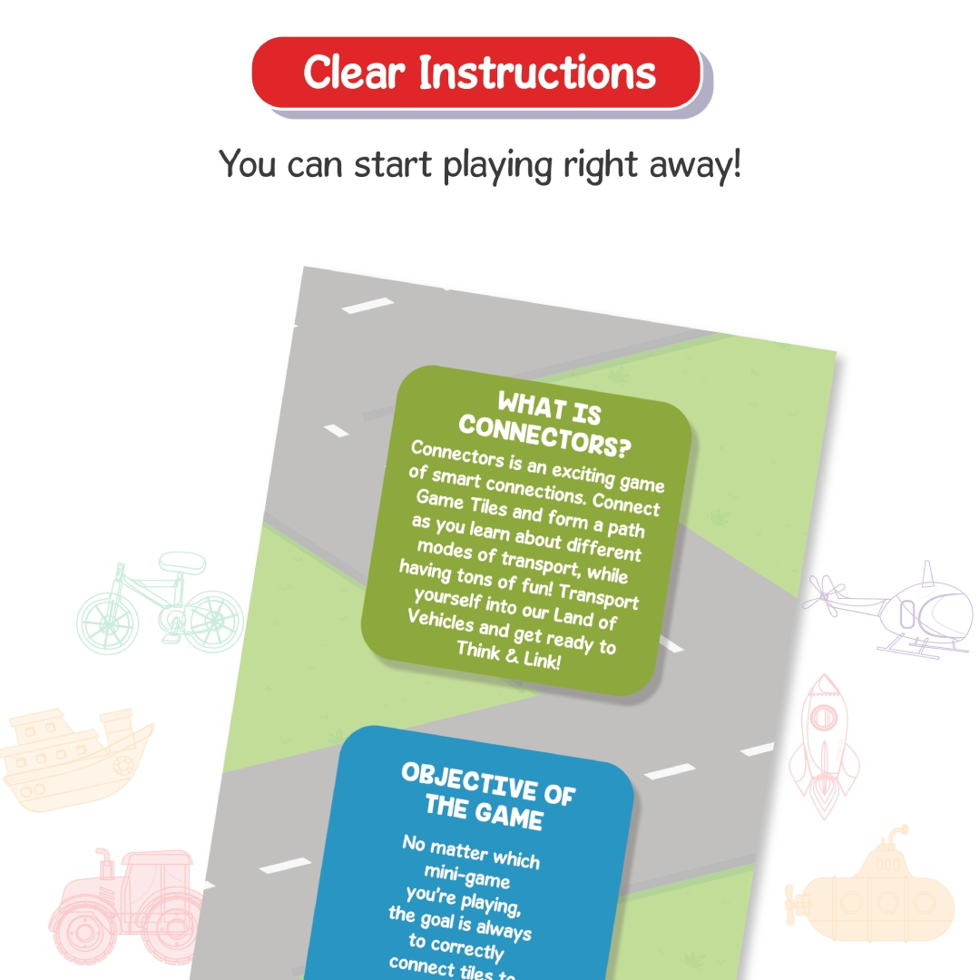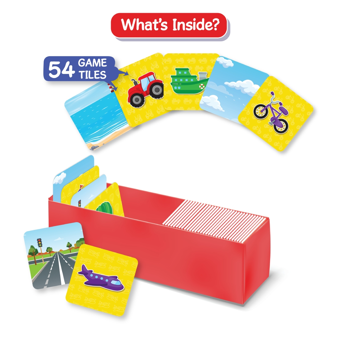 - Link & Learn - Pick & Play a tile on your turn as you learn all about the Land of Vehicles!