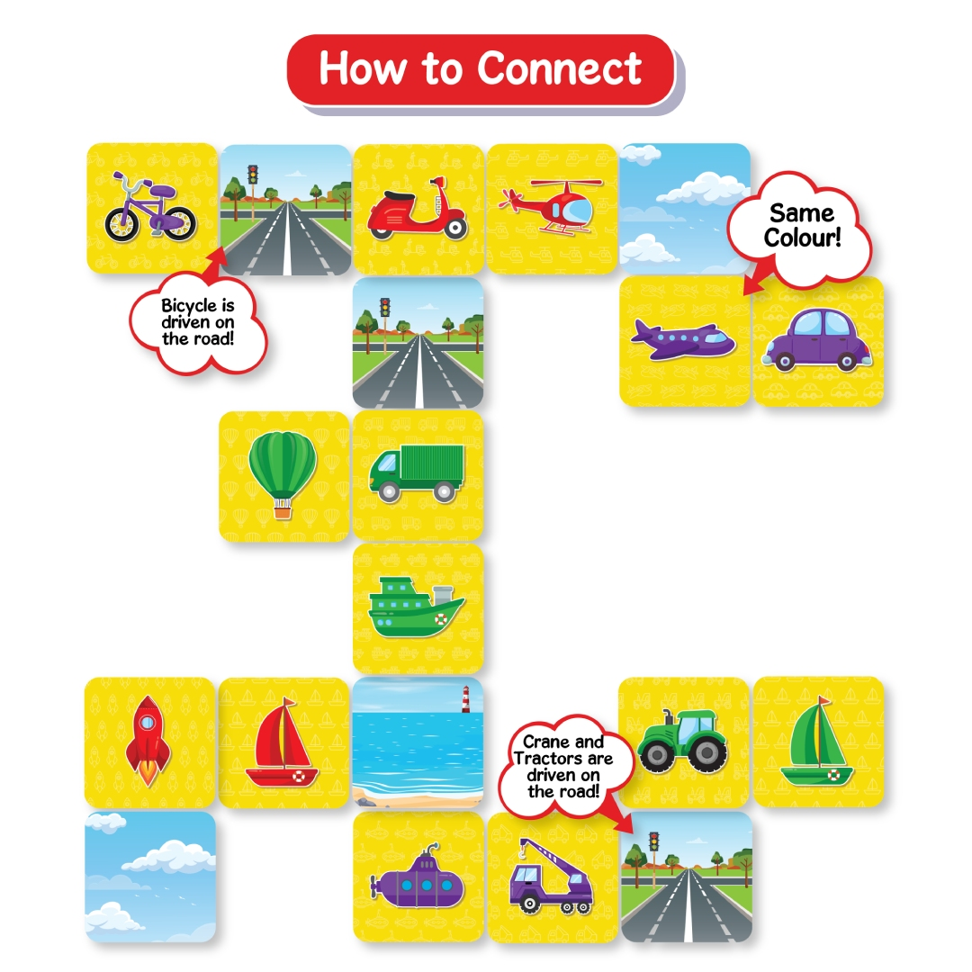 The rules of the game are basic : simply Connect Tiles to one another either vertically or horizontally and form a path. Possible connections are same colours and the mode of transport. Transport yourself into our Land of Vehicles and get ready to Think & Link! Be the first player to get rid of all your tiles to win!
