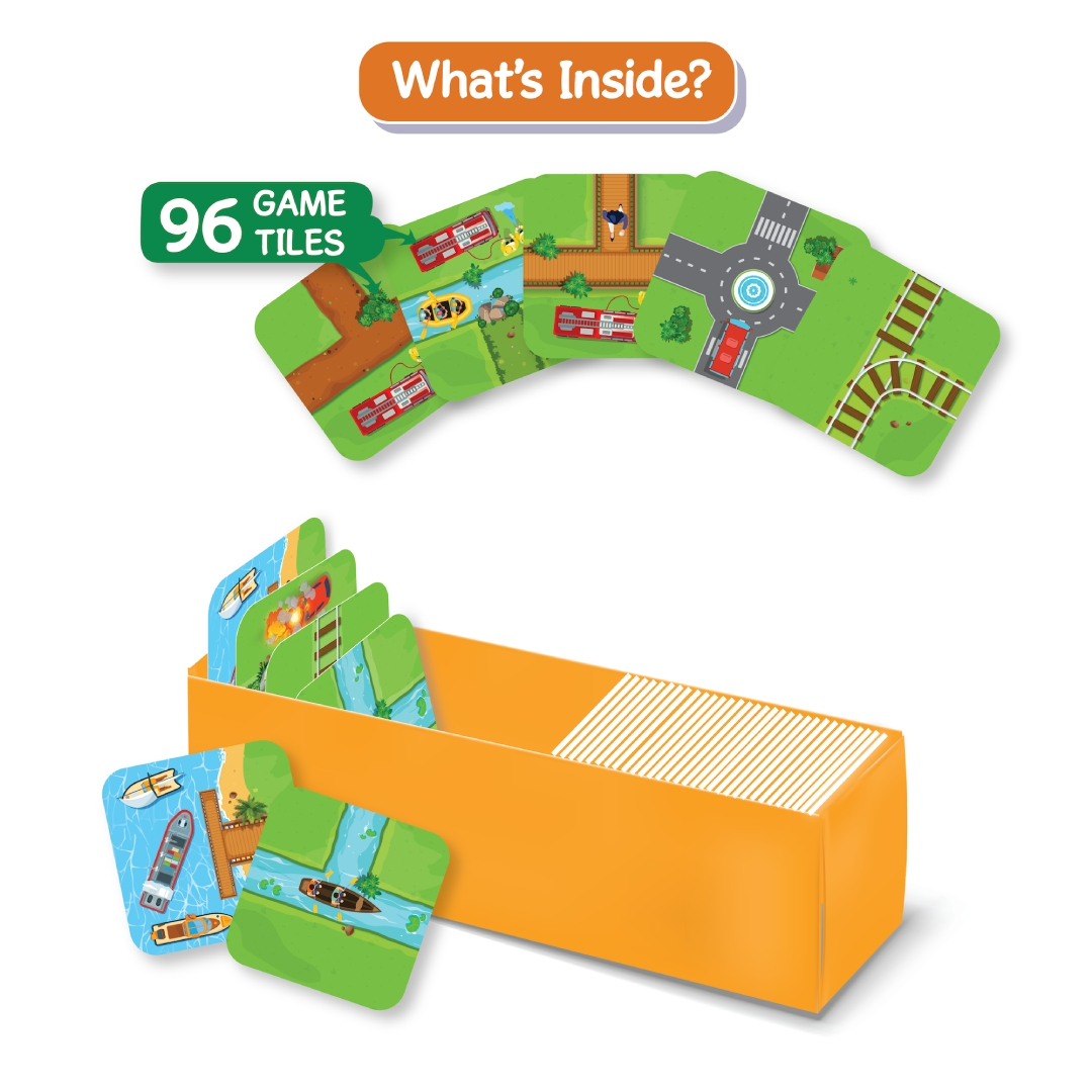 Connectors Road Rush comes with 96 Tiles and a clear instructional manual. Learn to play in less than five minutes!