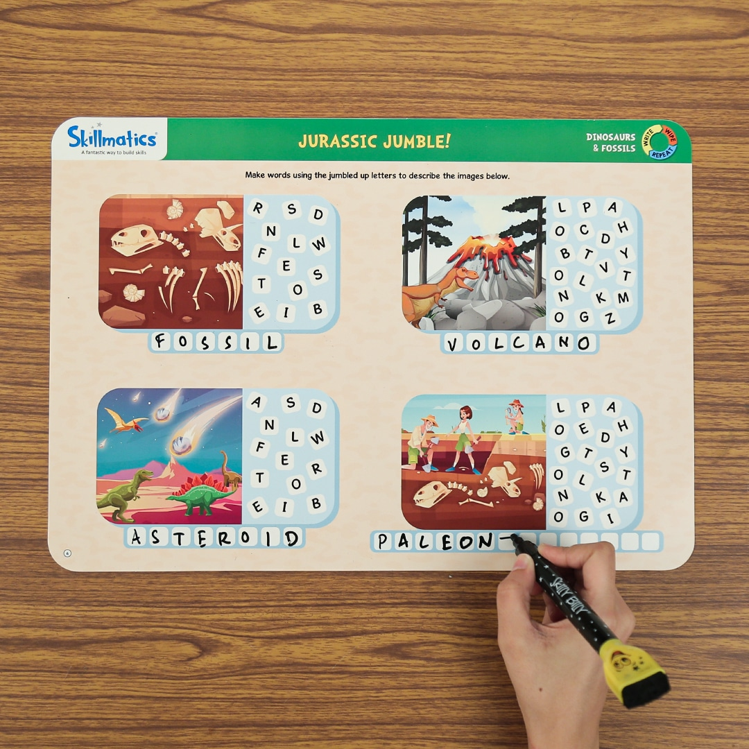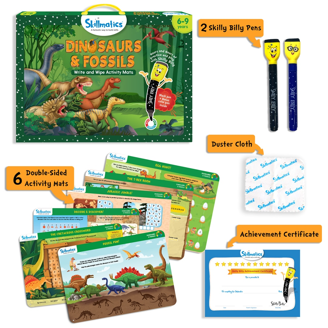 Skillmatics Educational Game Dinosaurs and Fossils (6-9 Years) | Gift & Learning Tool for Boys and Girls | Reusable Activity Mats
