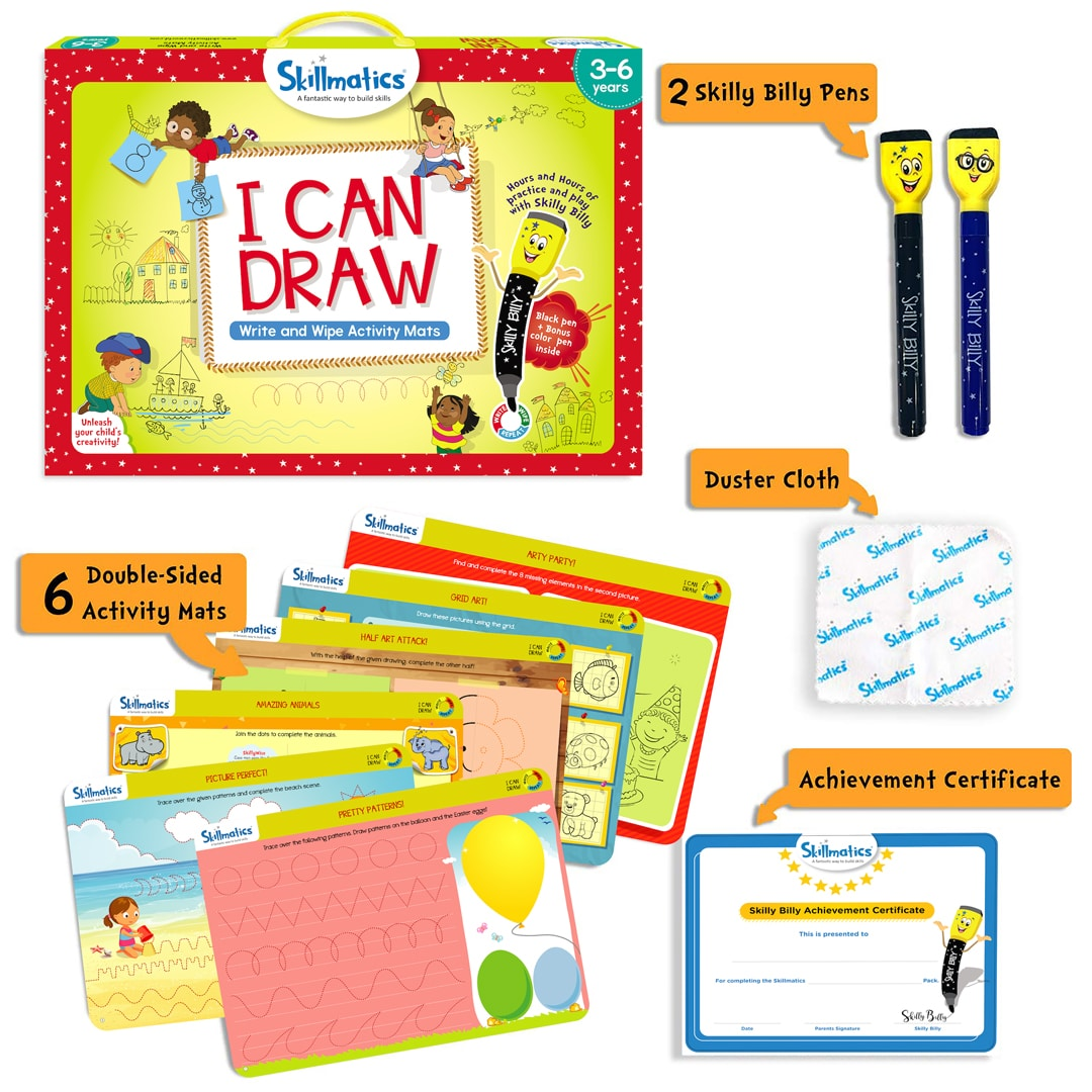 Skillmatics Educational Game : I Can Draw | Gifts & Preschool Learning for Kids Ages 3 to 6 | Reusable Activity Mats with 2 Dry Erase Markers