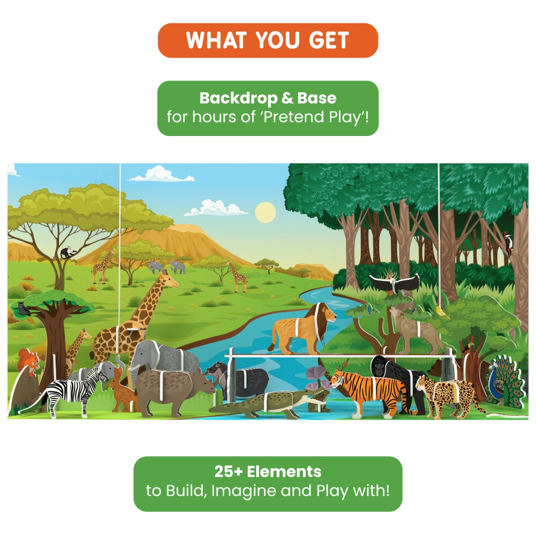 Build a Plastic Free World of Amazing Animals consisting of 80+ pieces to Build, Learn and Play with! This product encourages imaginative thinking and enables children to experience the joy of creating their own 'Pretend Play'!