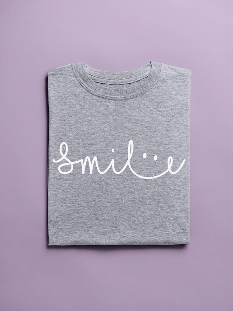 Simple but cute calligraphic design "smile". Women's Sport Grey T-shirt. Design by Smartprints.