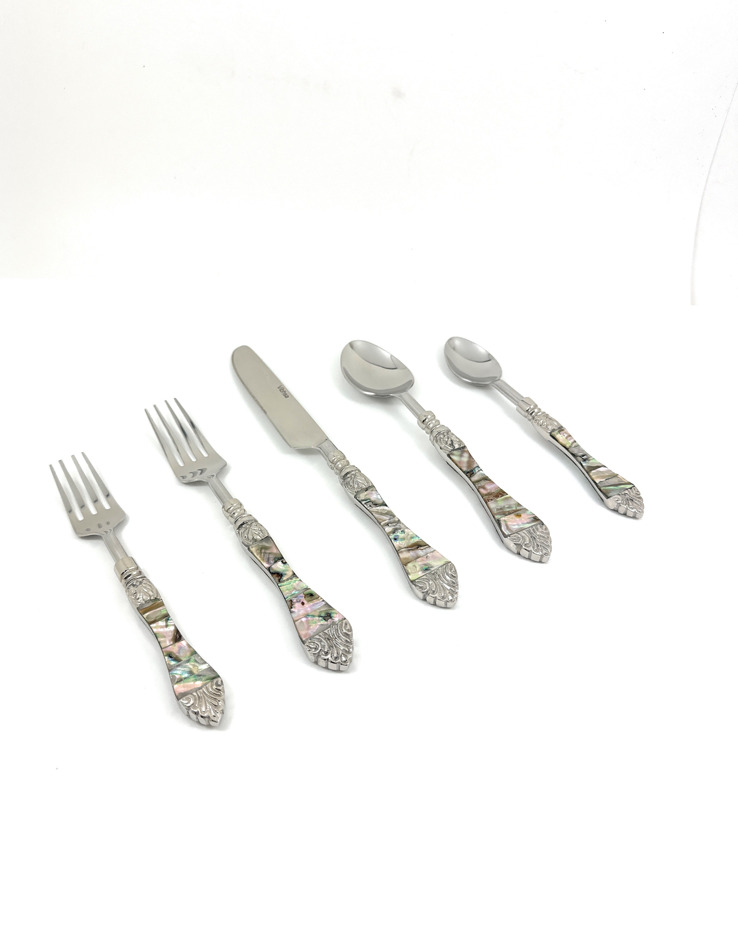 Introducing our Stainless Steel Flatware set of 20 with Seawork Handle, a stunning fusion of functionality and coastal-inspired design. Each piece in this set features handles adorned with intricate seashell and wave patterns, bringing the beauty of the sea to your dining table. Crafted from high-quality stainless steel, this flatware set offers exceptional durability, corrosion resistance, and lasting shine. The weight and balance of each utensil are carefully calibrated to provide a comfortable grip and effortless control. The 20-piece set includes all the essential utensils needed for a complete dining setting, including dinner forks, salad forks, dinner knives, dinner spoons, and teaspoons. Whether you're hosting a beachside gathering or simply want to infuse a touch of coastal charm into your dining experience, this collection is the perfect