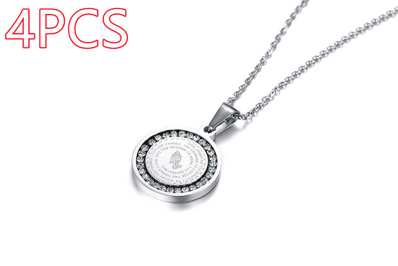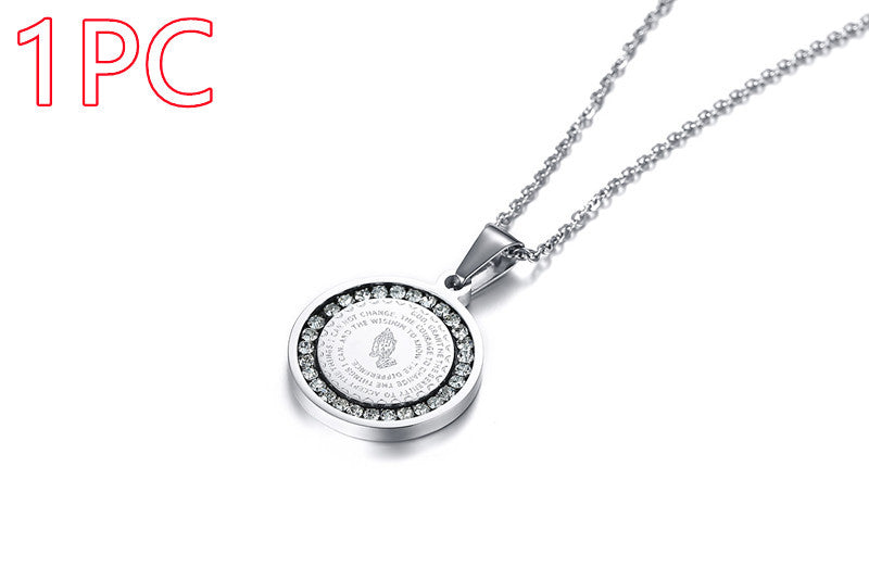Stainless Steel Rhinestone Prayer English Scripture Pendant
