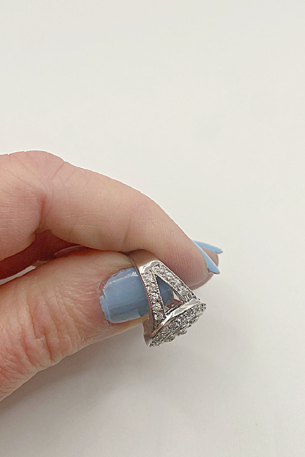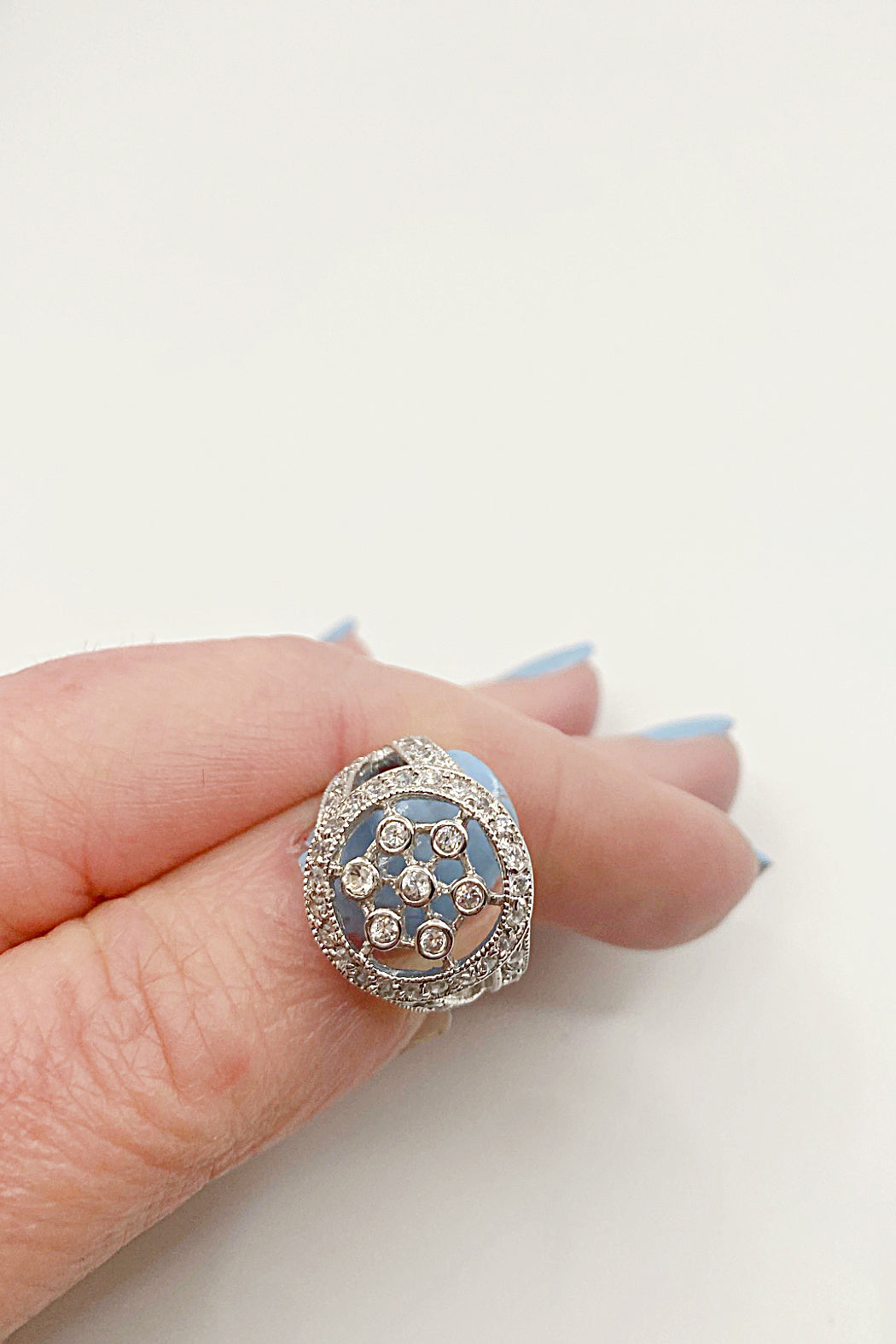 Enhance your style with the Sterling Pinwheel Ring. This unique piece is adorned with sparkling cubic zirconias, adding a touch of glam to your look. Its 2-row band ensures a comfortable fit while being lead and nickel compliant for peace of mind. Stand out from the crowd with this trendy and safe accessory. Size 6.
