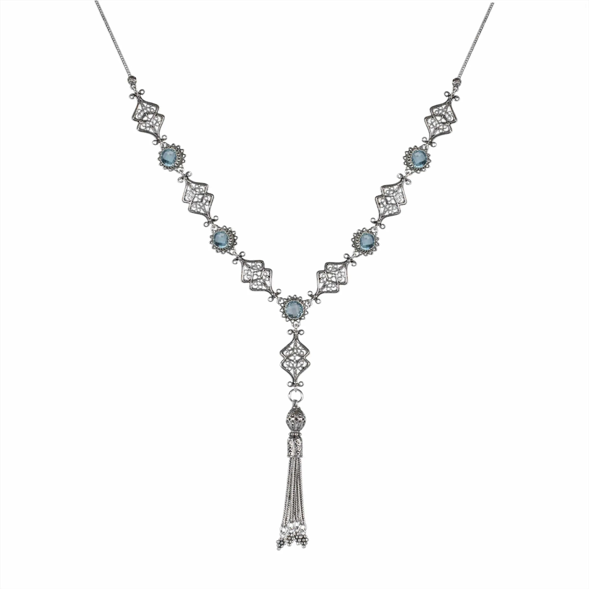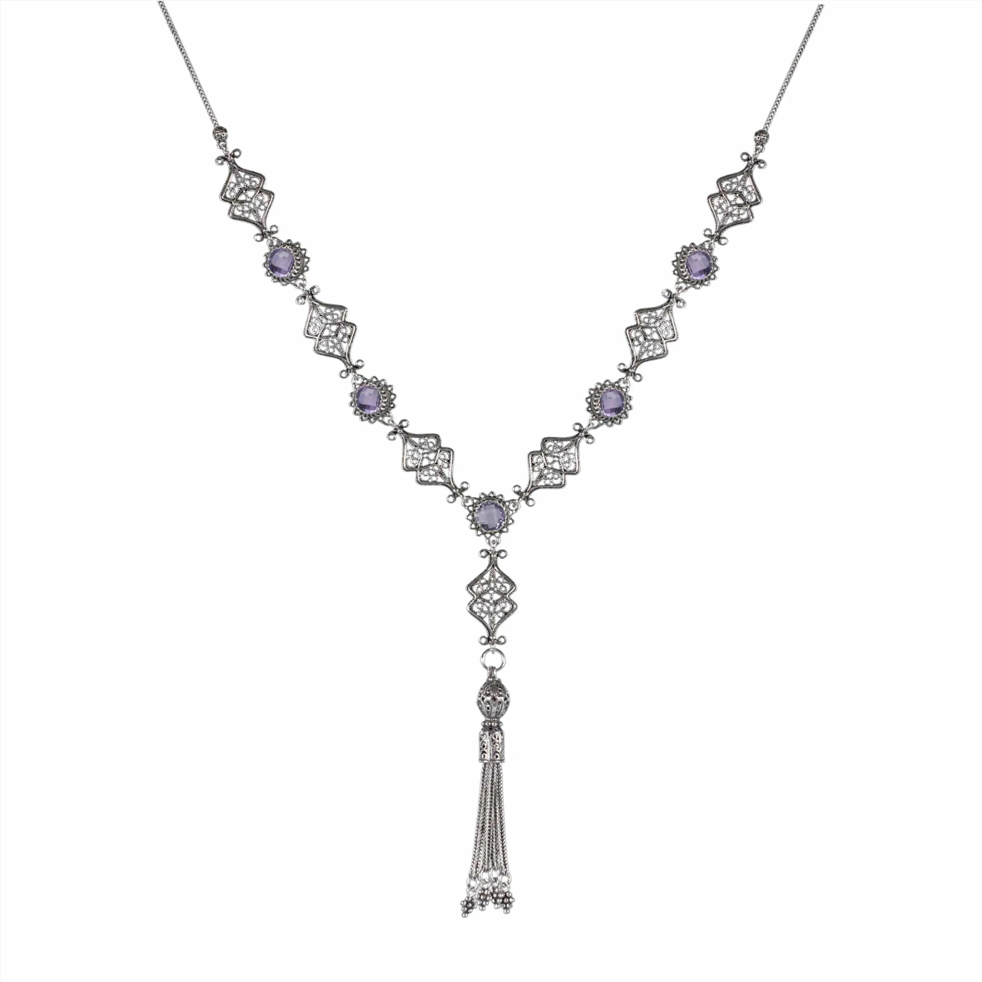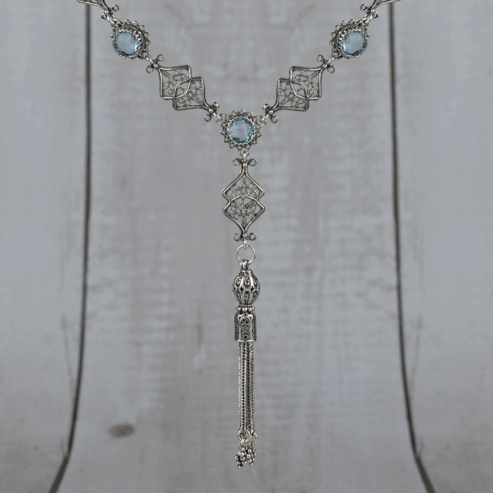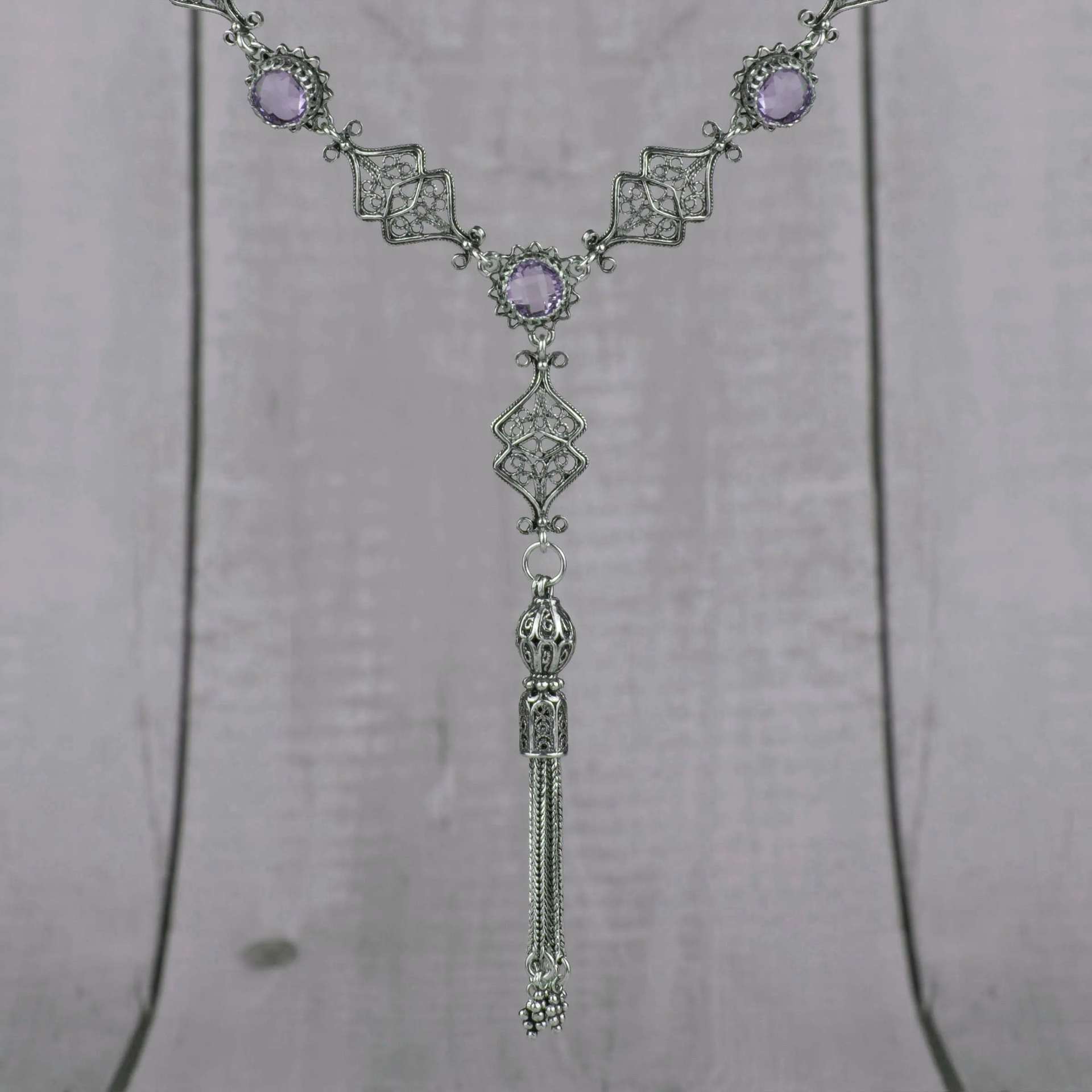 Sterling Silver Filigree Amethyst / Blue Topaz Tassel Choker Necklace