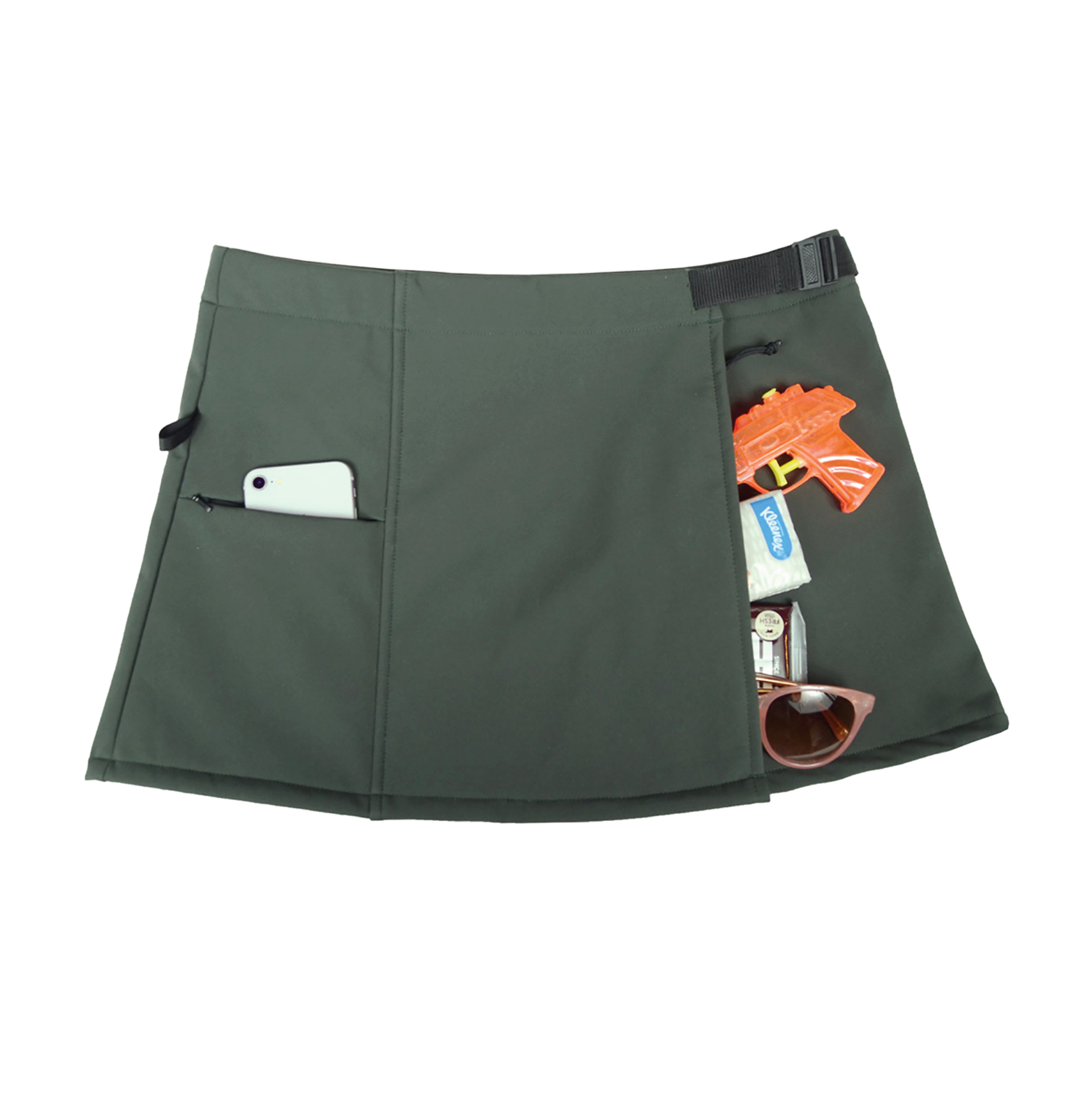 If you live an active outdoors lifestyle or being a global traveler, this is a gear that replaces a need to carry a purse, with the abundant storage and carry options for your intimate goods. The adjustable waist makes it possible to fit over your favorite pair of leggings or as an extra cargo/insulator over your snow pants. DWR / Membrane embedded fabric will keep you protected from the wet or cold elements that you will face on your journeys.