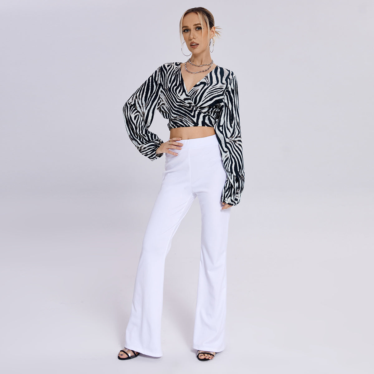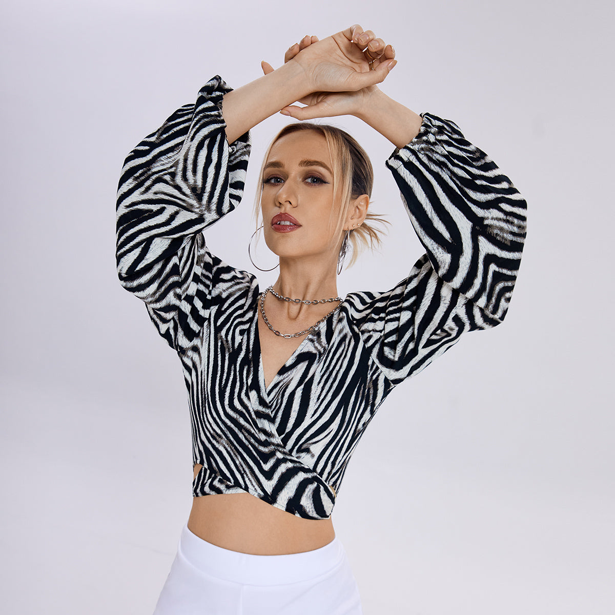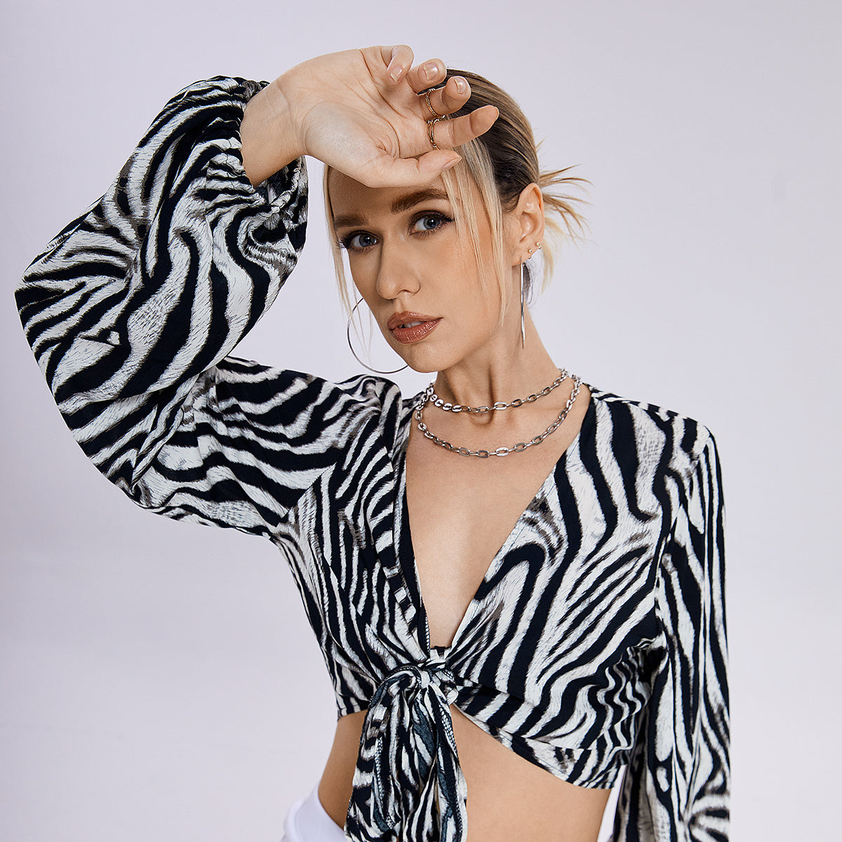 The New Zebra Striped Knot V -neck Top