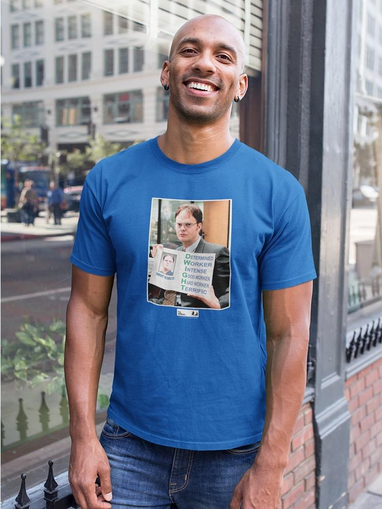 Look cool wearing this awesome t-shirt design of your favorite character from The Office, Dwight Schrute. Men's Royal Blue T-shirt. Design by The Office.