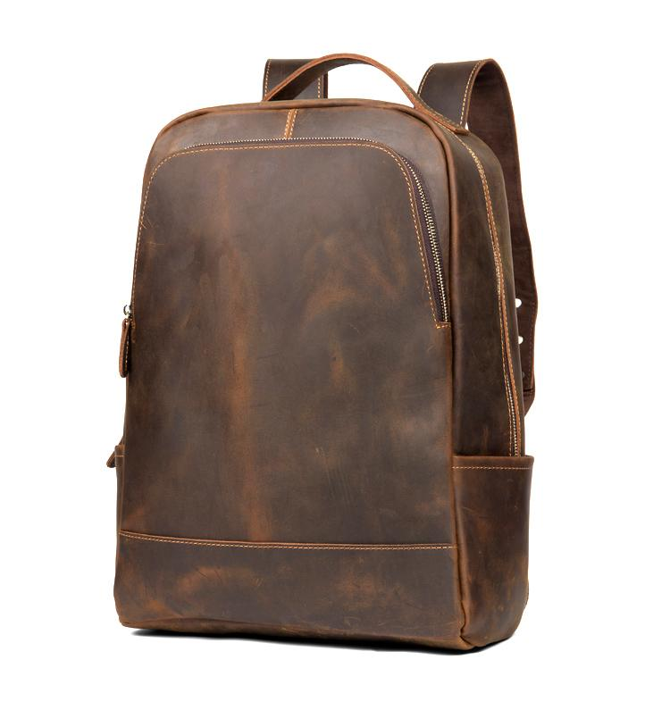 The Vernon Backpack is a simple, versatile, high-quality leather backpack. Essentials are carried in minimal style as this backpack features a roomy main compartment able to securely hold a 15” laptop, along with an exterior pocket included for items requiring quick and easy access. The backpack is designed to distribute weight evenly across the back, allowing heavy items to be carried comfortably, without compromising on style. The leather is high-quality crazy horse leather, which means that it is tough, dependable and long lasting.