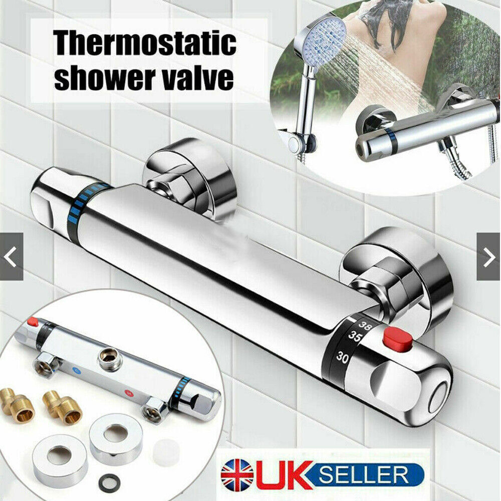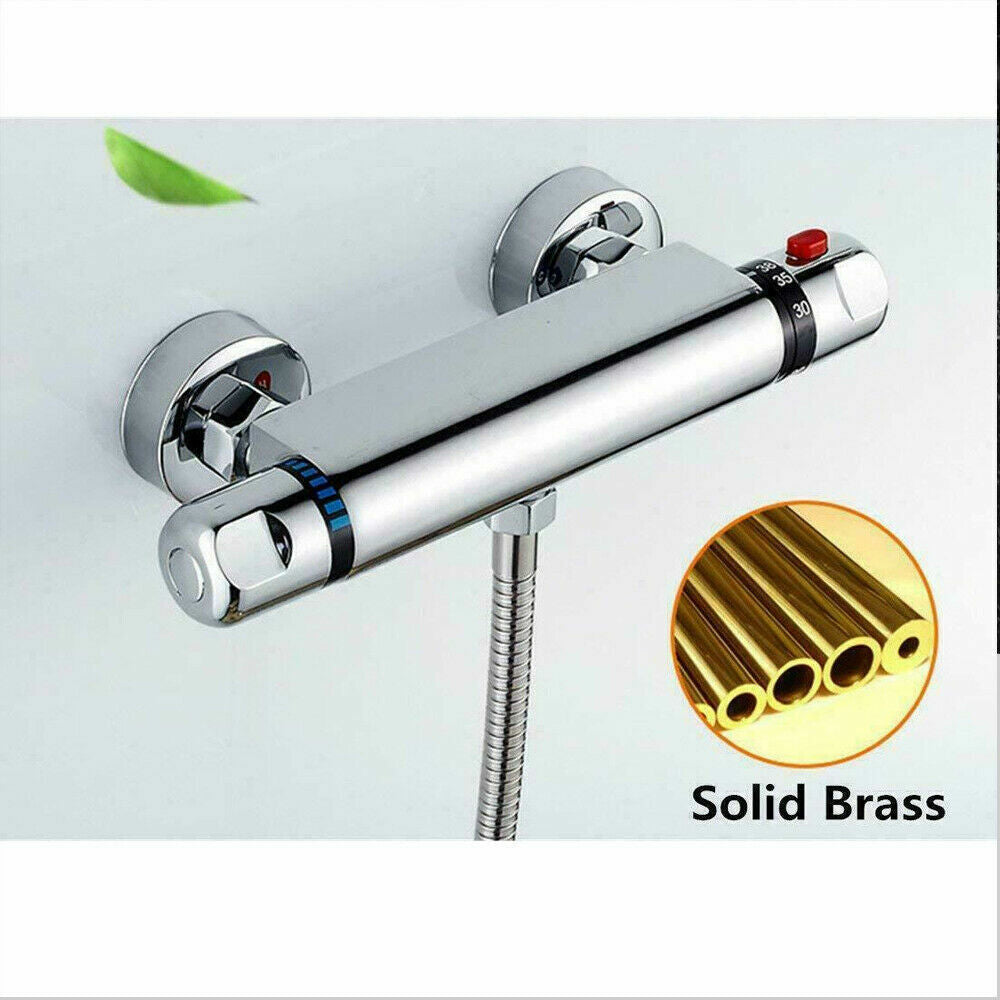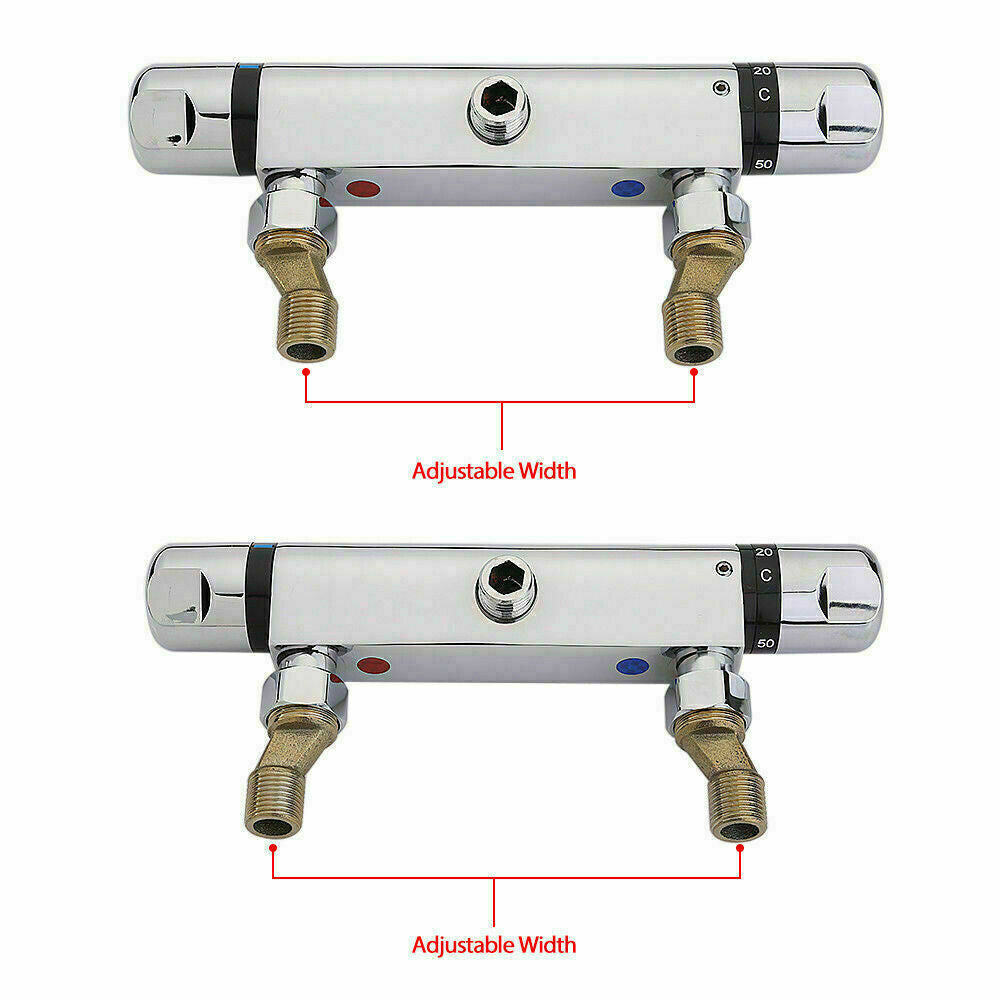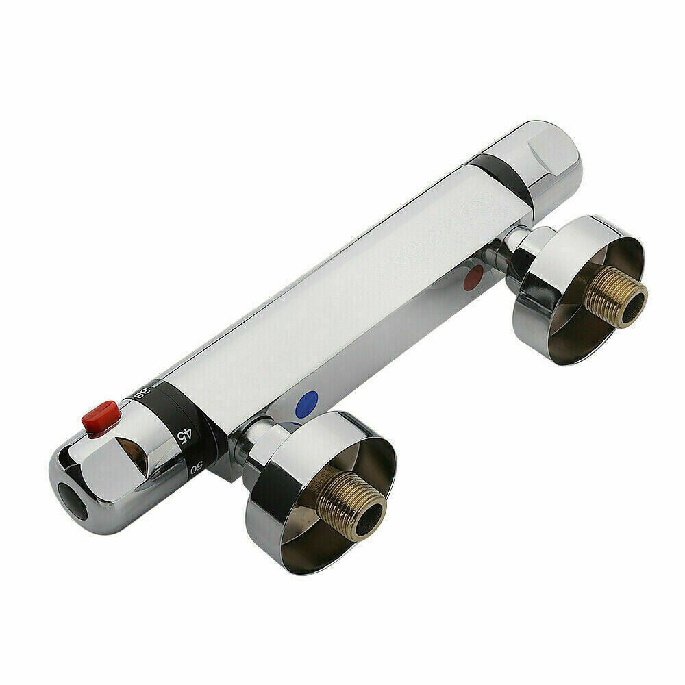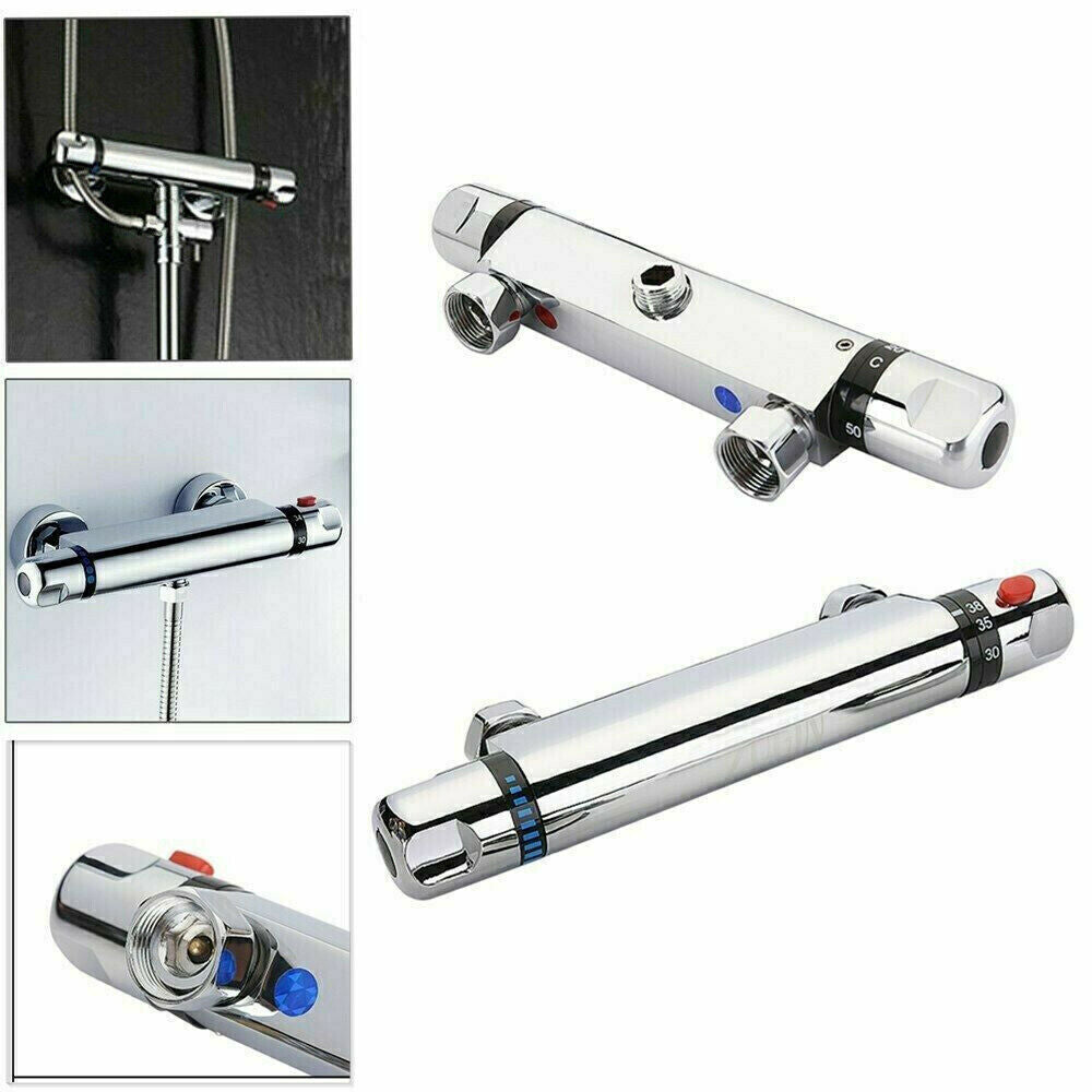 Thermostatic Exposed Bar Shower Mixer Valve Tap Chrome Bottom 1-2 Outlet New
