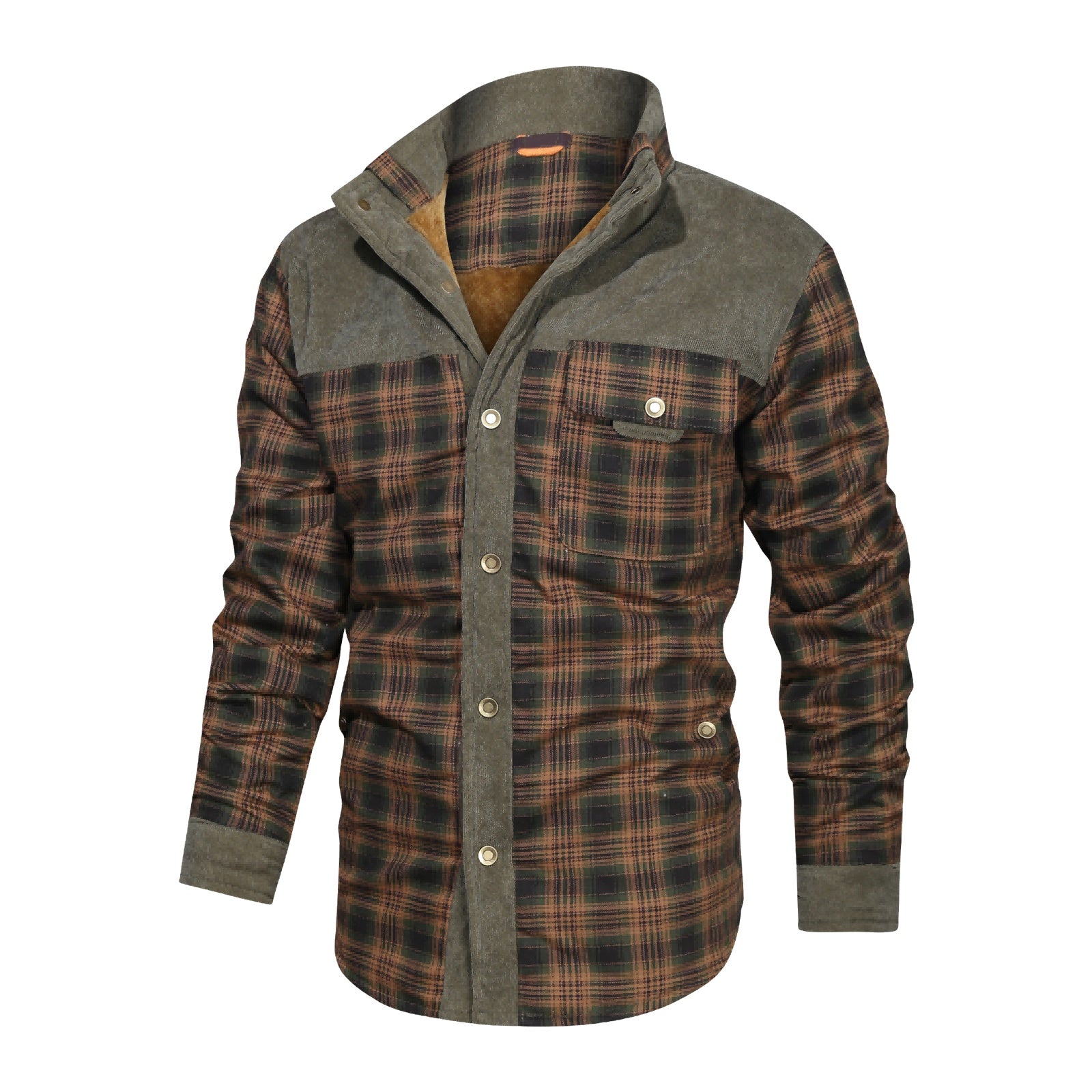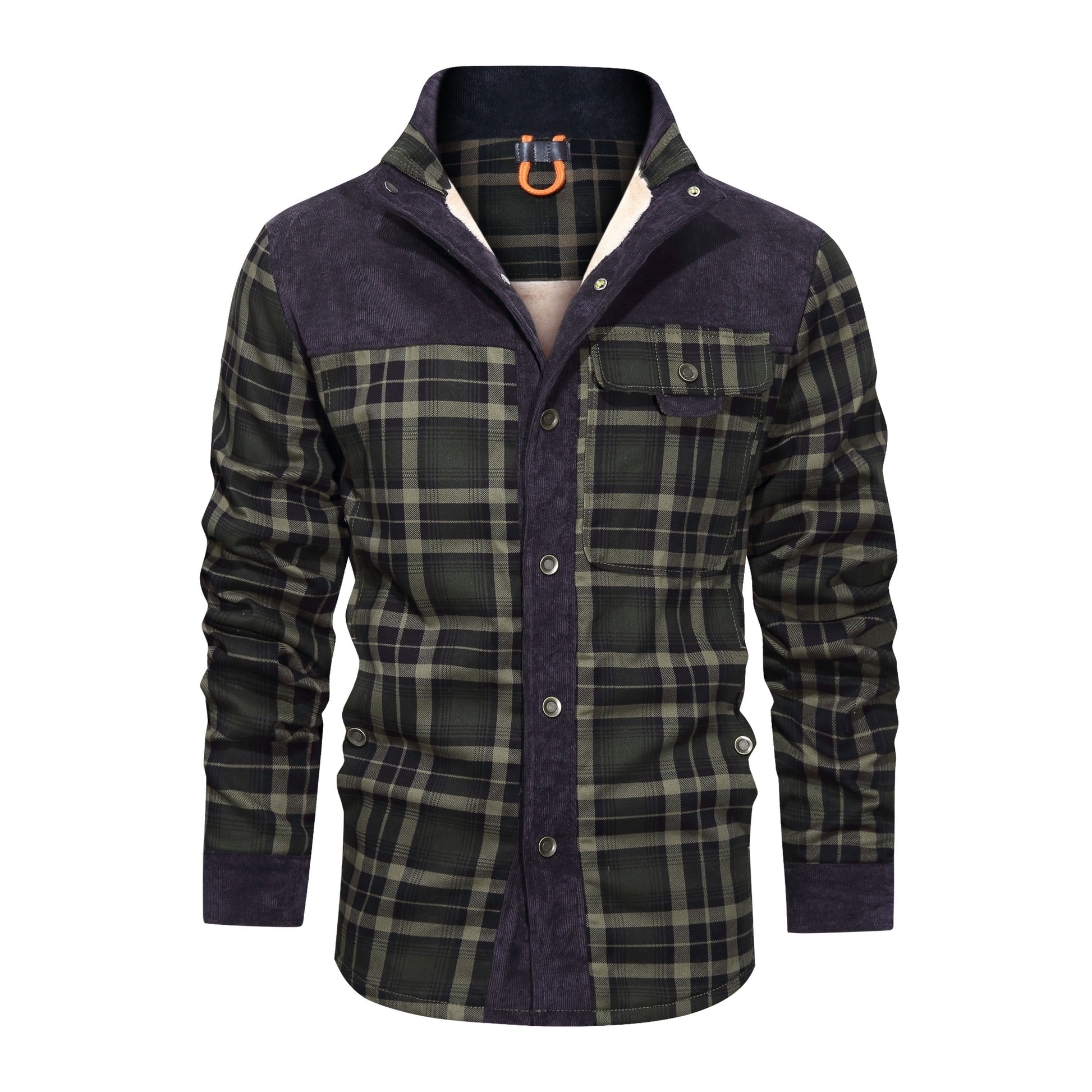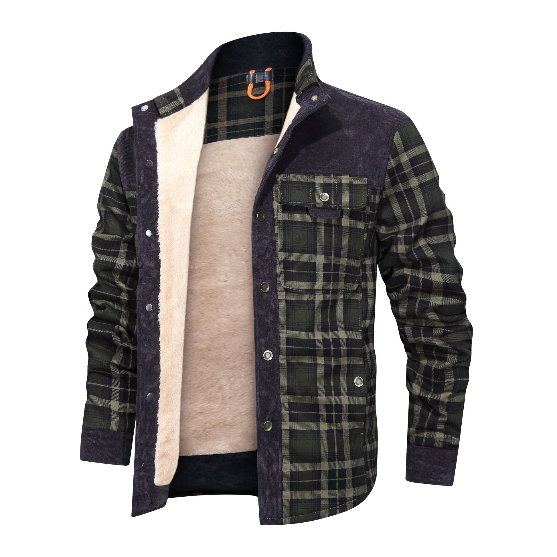 Thickened Shirt Jacket With Classic Plaid Fuzzy Fleece Lining Inside Design