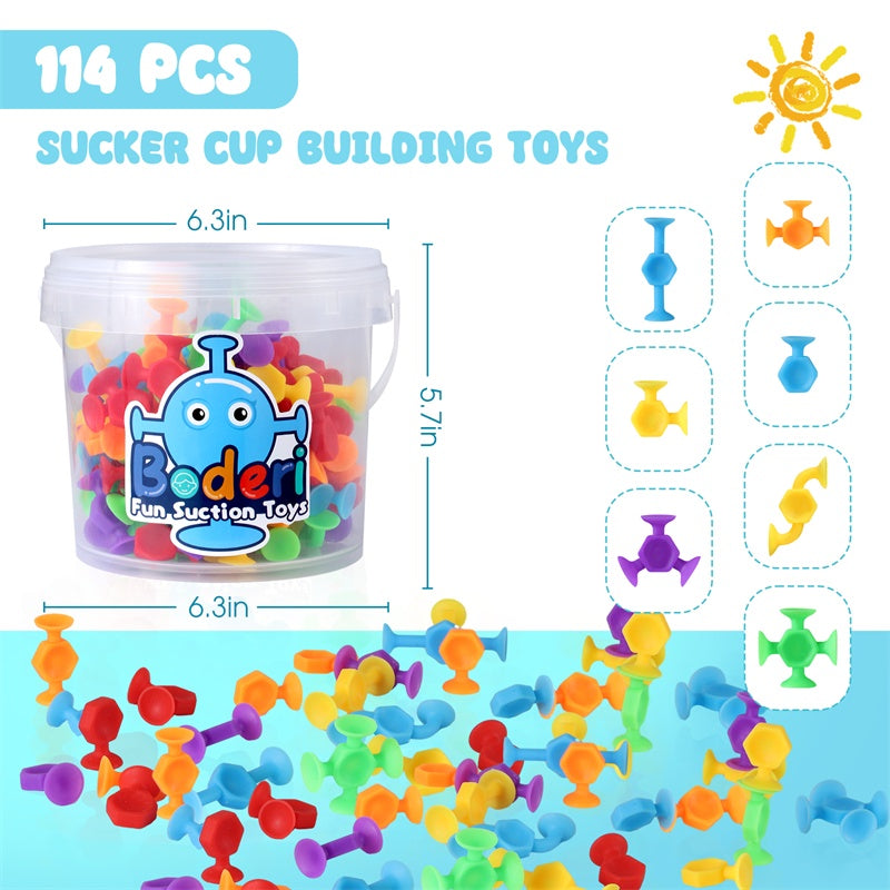 Toys For Kids Ages 4-8 Boys 114 PCS Suction Toys Sensory Boys Girls Stress Release Toys Bath Toys Travel Toys Suction Cup Toys Silicone