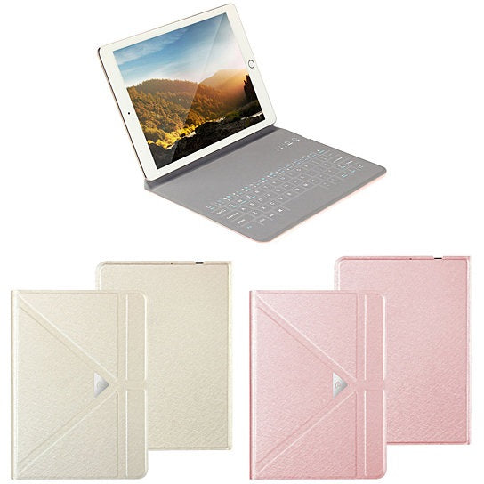 The case is made from a spill-proof material with Bluetooth connected keyboard, that will easily make your iPad into a desktop computer! Lightweight and easy to carry, the back of the case folds out to work as a stand. The built-in battery charges the keyboard that lasts for a week of normal use...