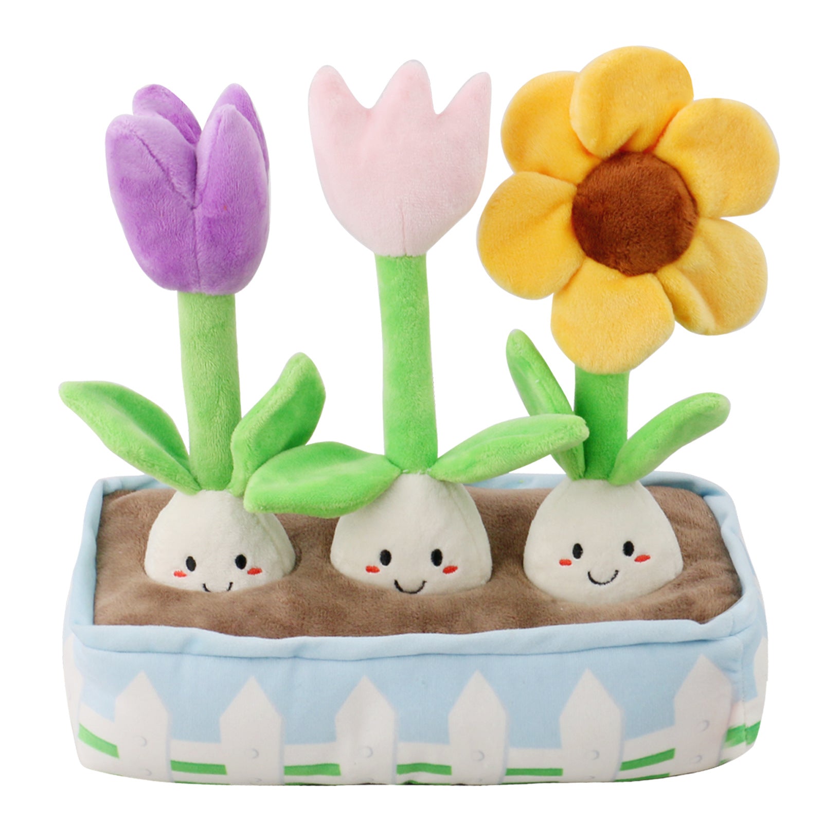 Color: Pink Tulip, purple tulip, sunflower, flower pot set